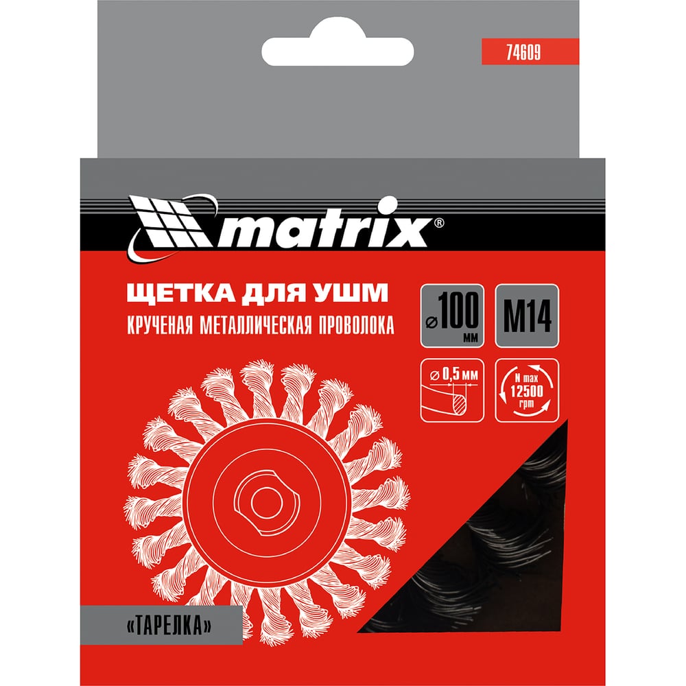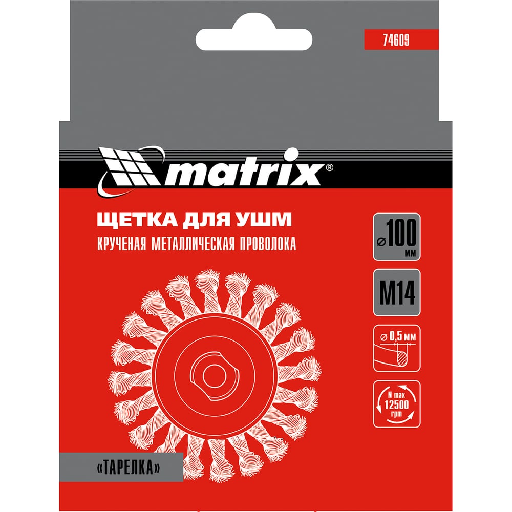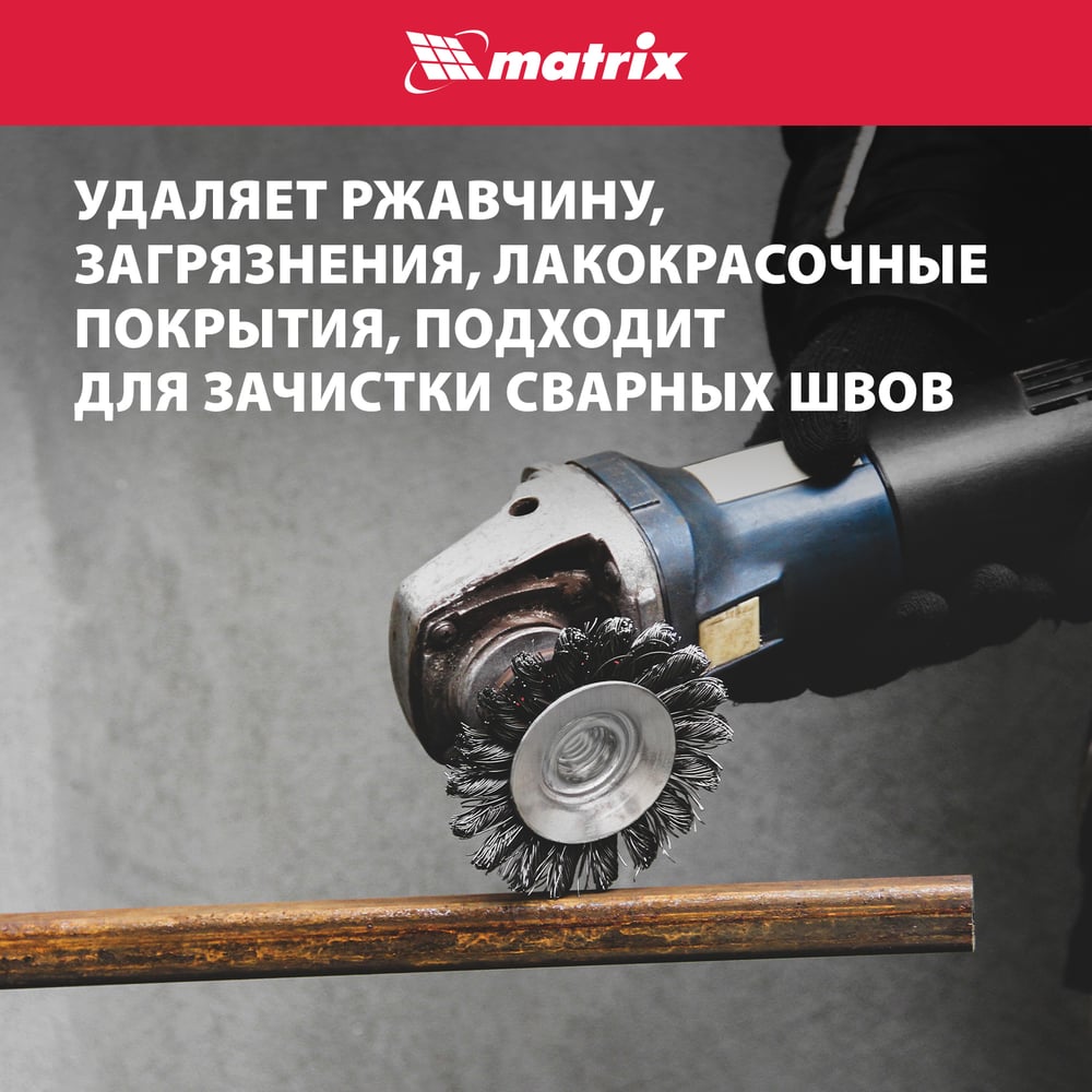 Щетка выгнутая для УШМ (100 мм; М14; крученая проволока 0.5 мм) MATRIX 74609