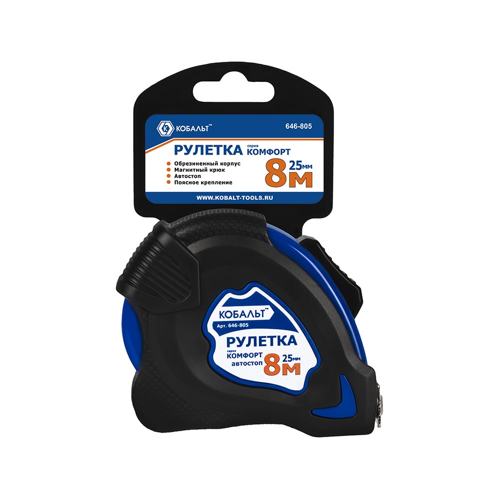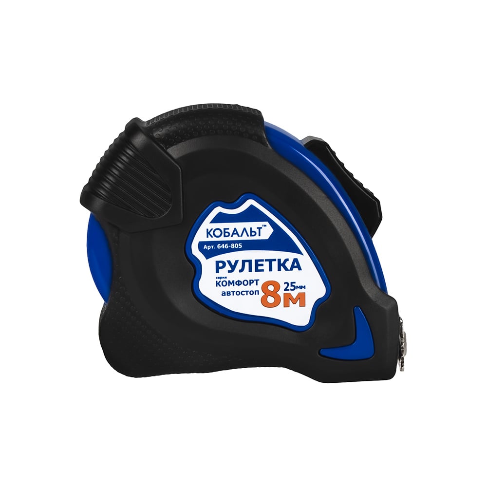 Рулетка Комфорт (8м x 25мм) обрезиненный корпус КОБАЛЬТ 646-805