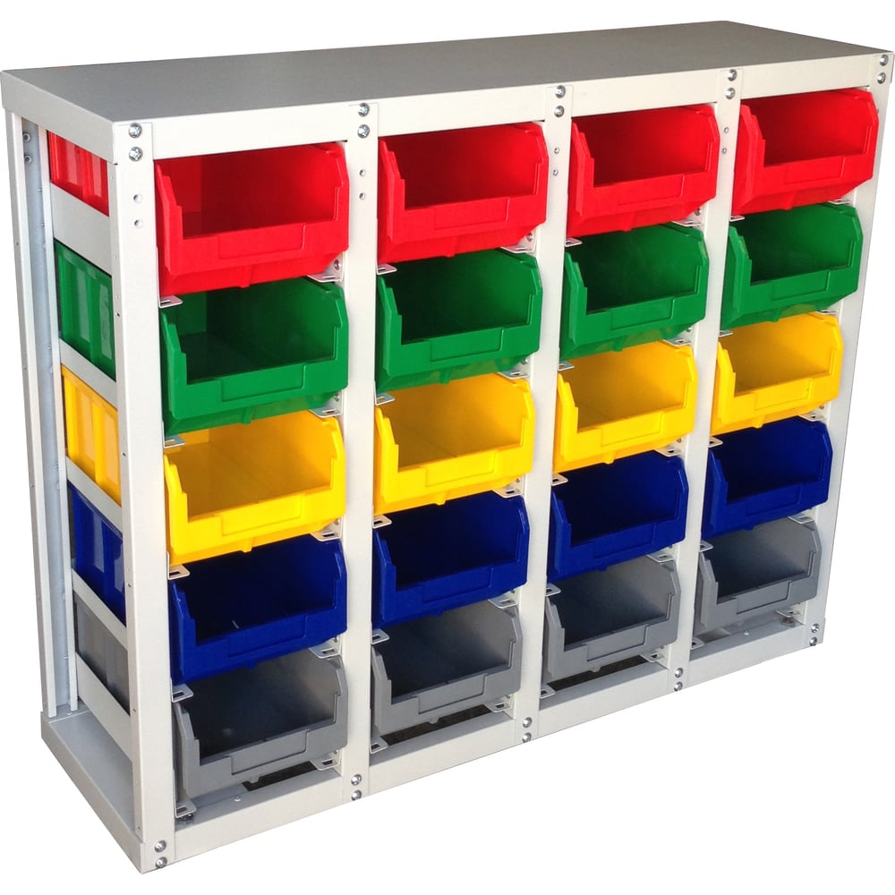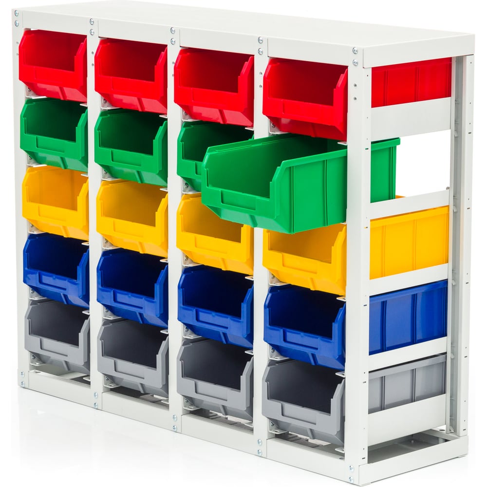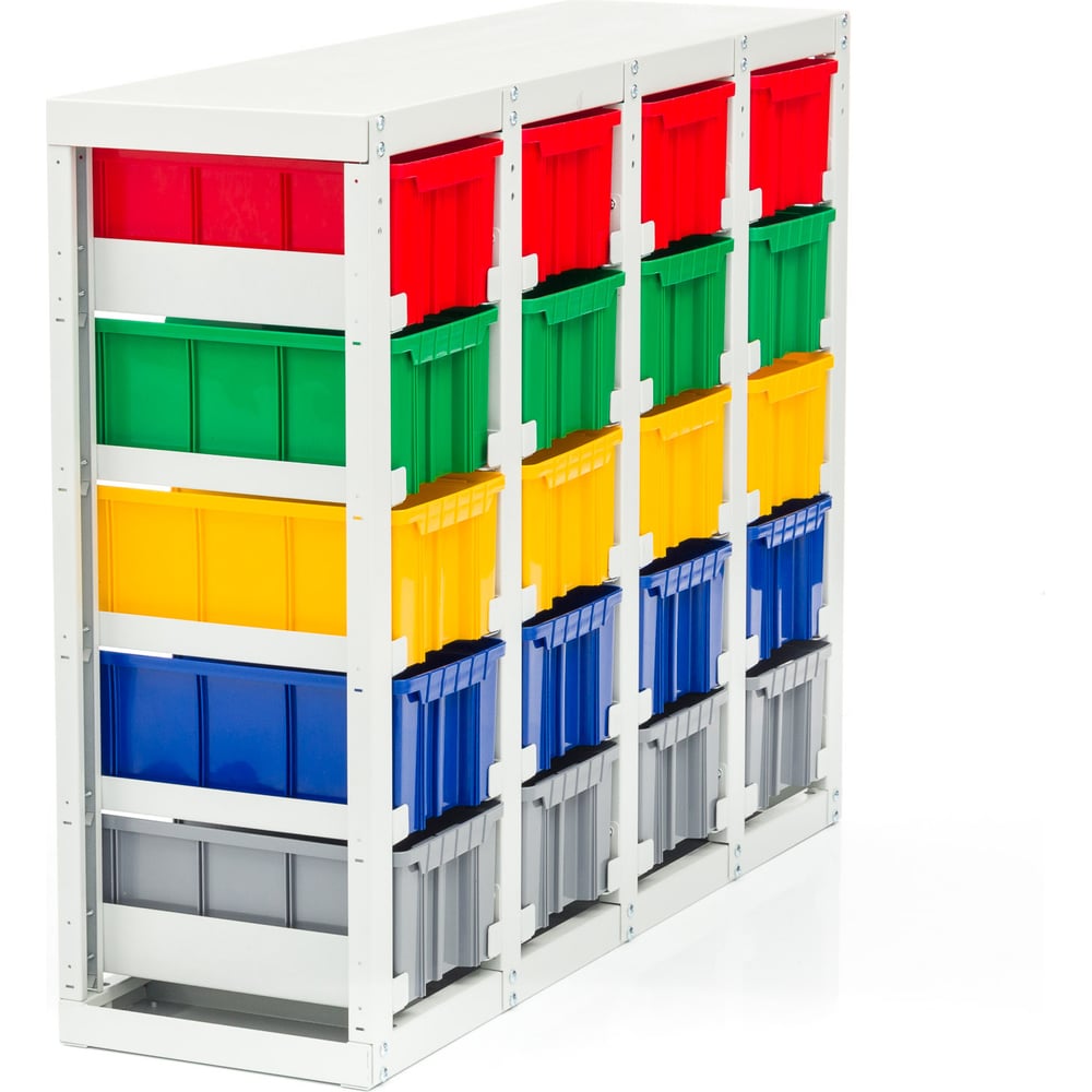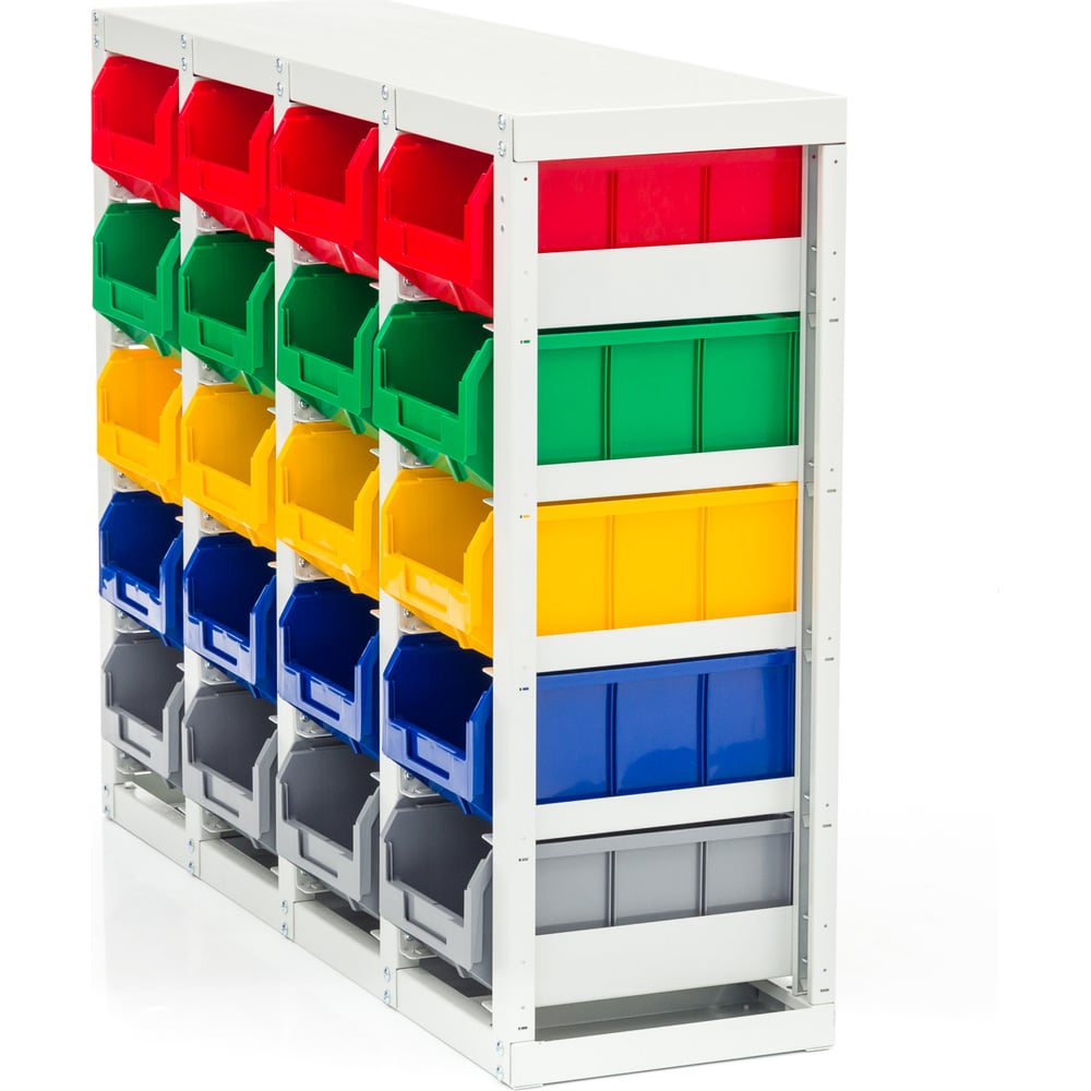 Стеллаж с направляющими Стелла-техник стационарный, односторонний, 20 ячеек с ящиками, V3-20