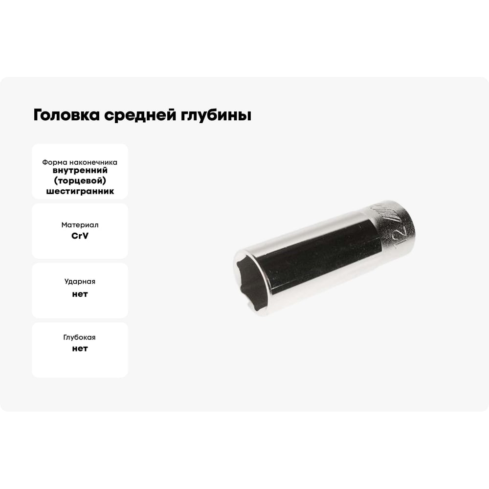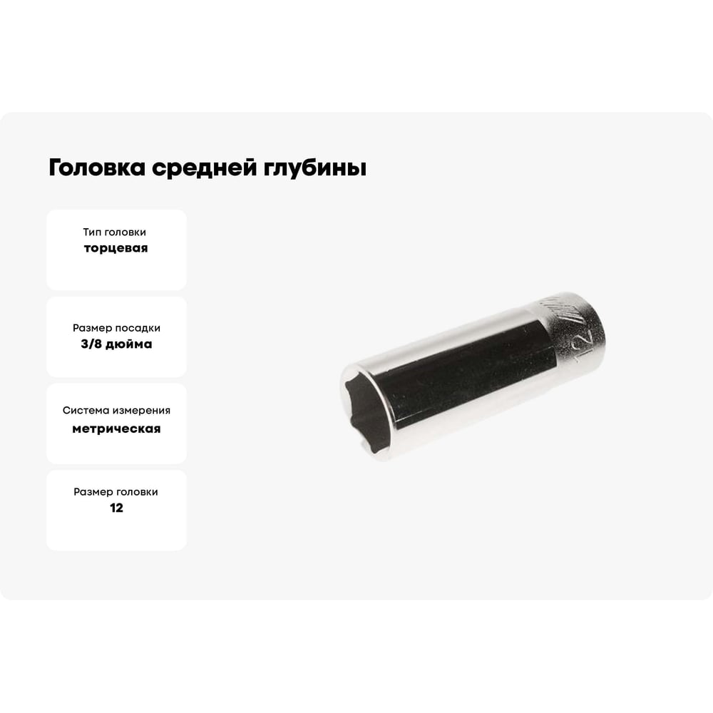 Головка средней глубины 6-гранная 3/8"х12мм, длина 46мм JTC-34612