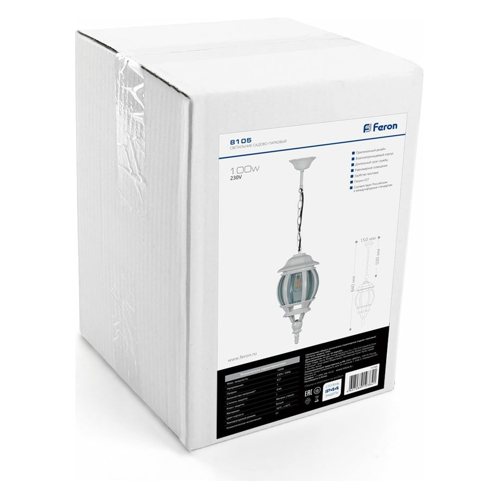 Садово-парковый светильник, восьмигранный на цепочке 100W E27 230V, белый Feron 8105 11103
