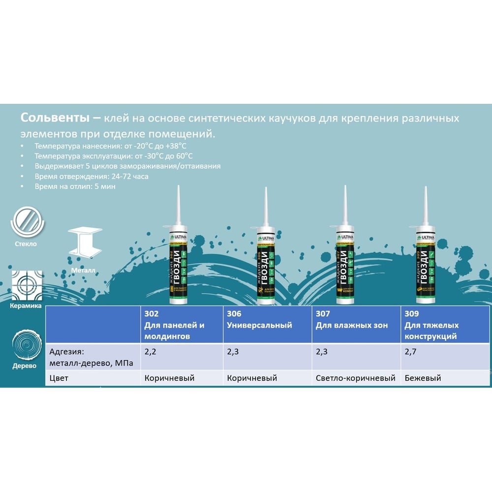 | Склеиваемые материалы | гипсокартон, керамика, стеклопластик, ДСП, кирпич, бетон, дерево, ПВХ, МДФ |