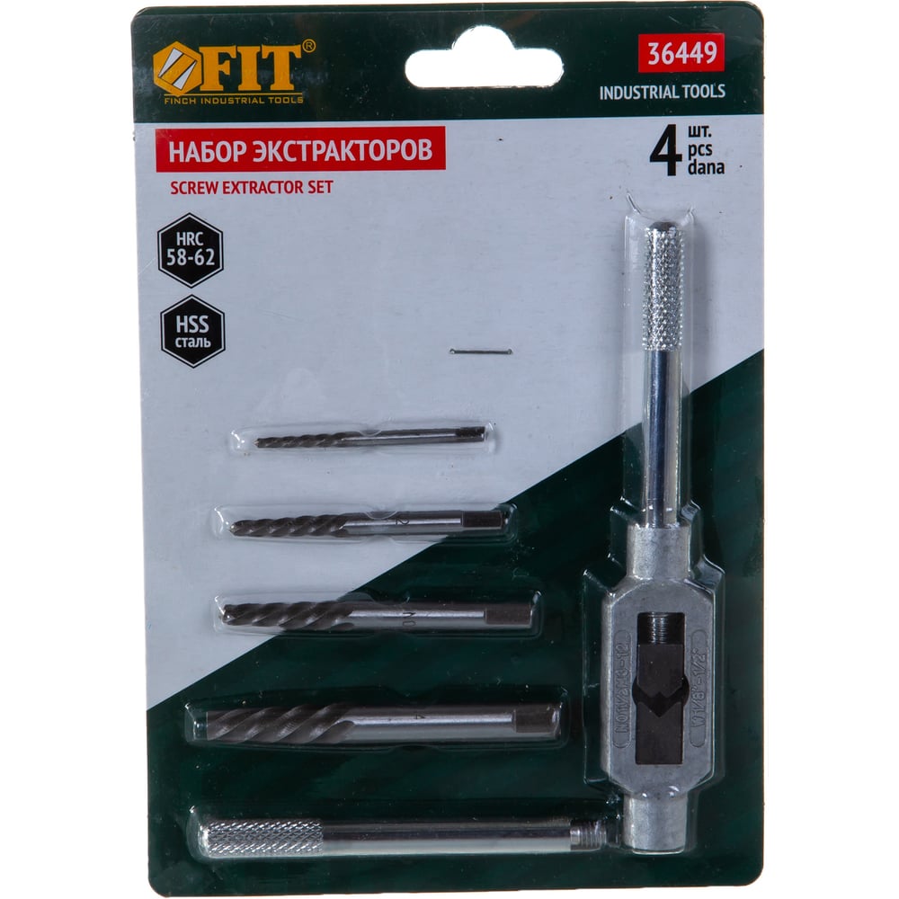 Набор экстракторов из быстрорежущей HSS стали с метчикодержателем, 5 шт. FIT IT Профи 36449