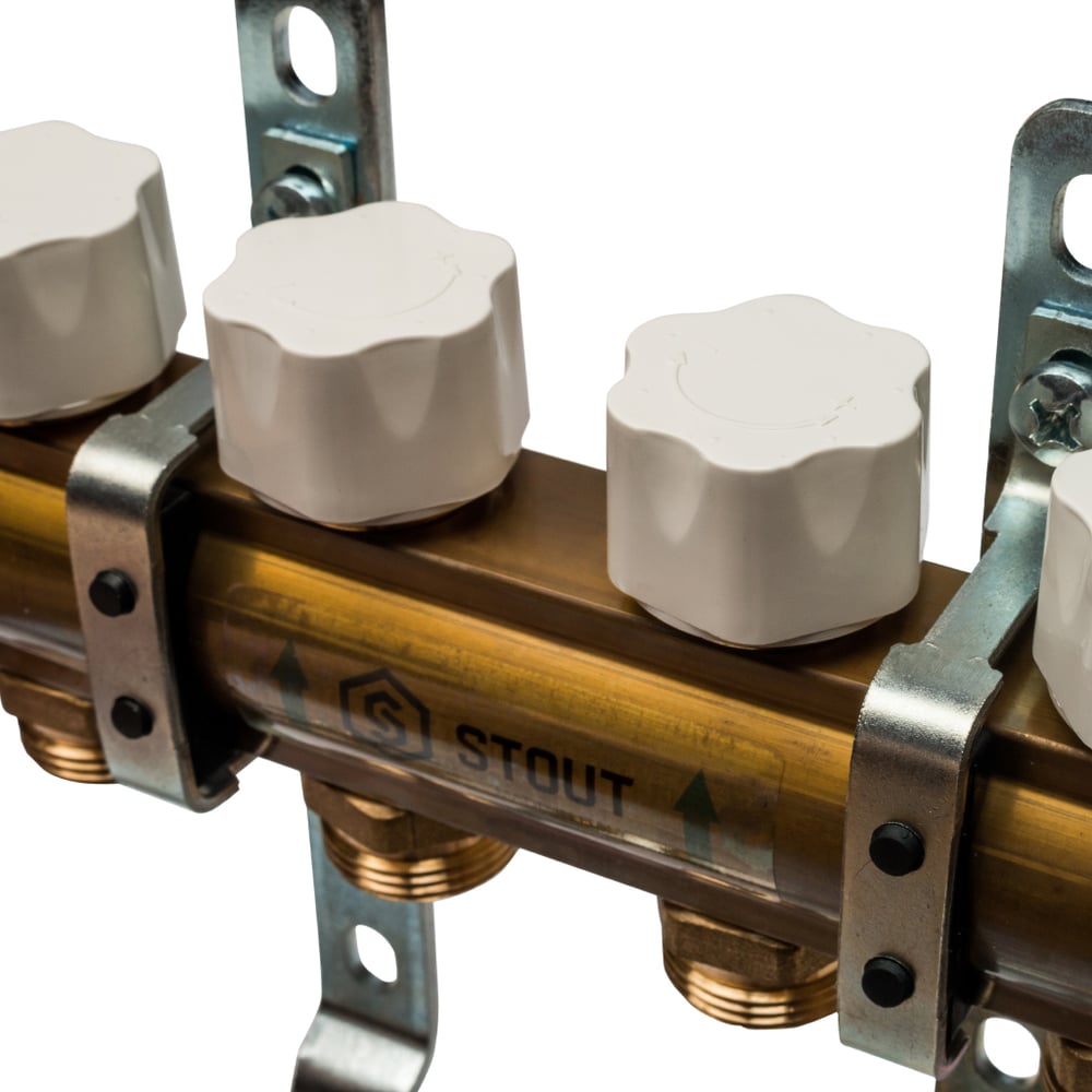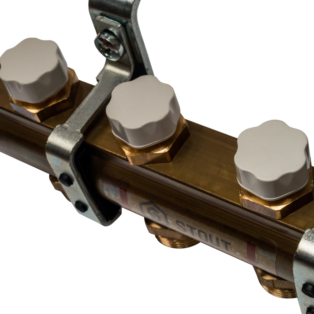 Распределительный коллектор из латуни без расходомеров 4 вых. STOUT SMB 0468 000004