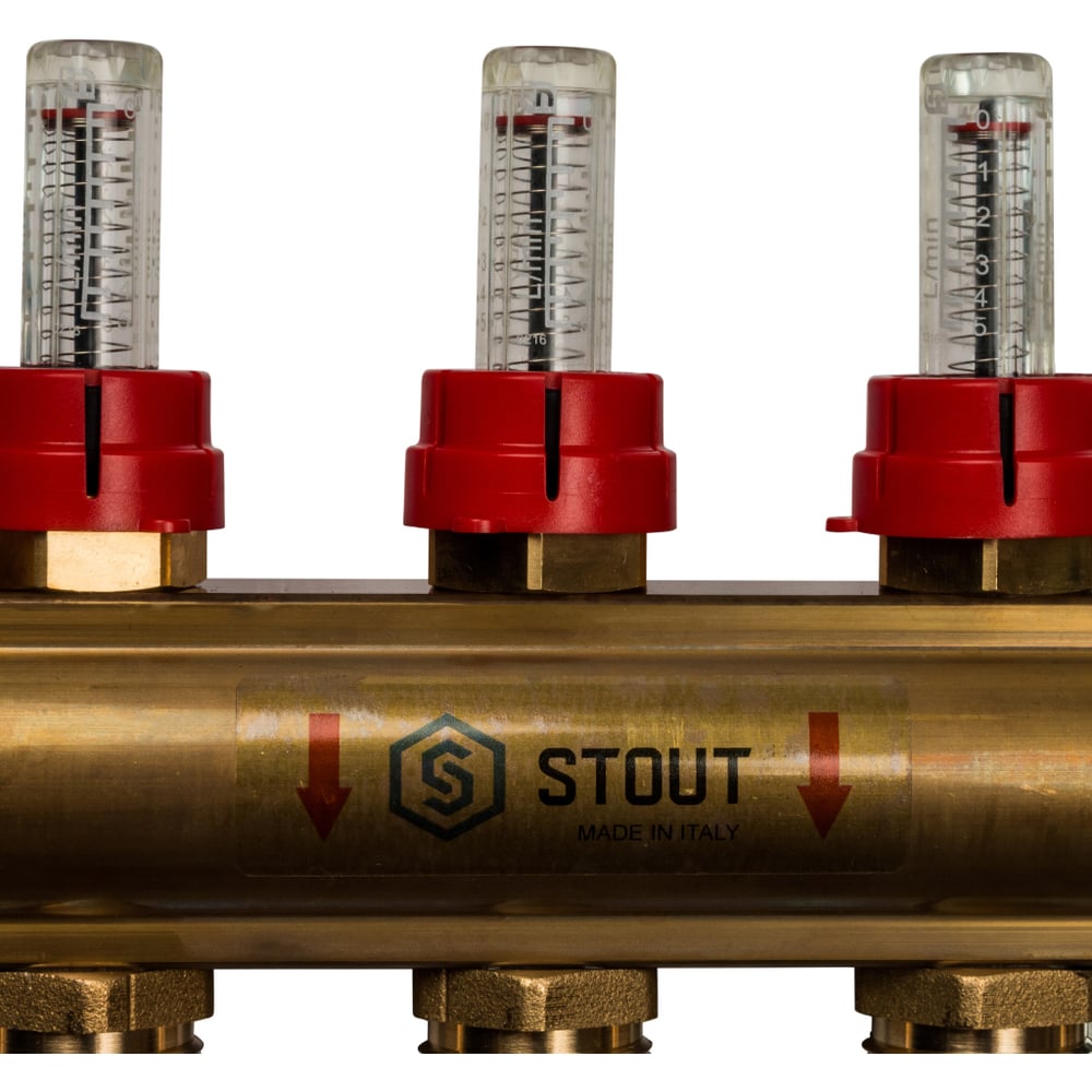 Распределительный коллектор из латуни с расходомерами 5 вых. STOUT SMB 0473 000005