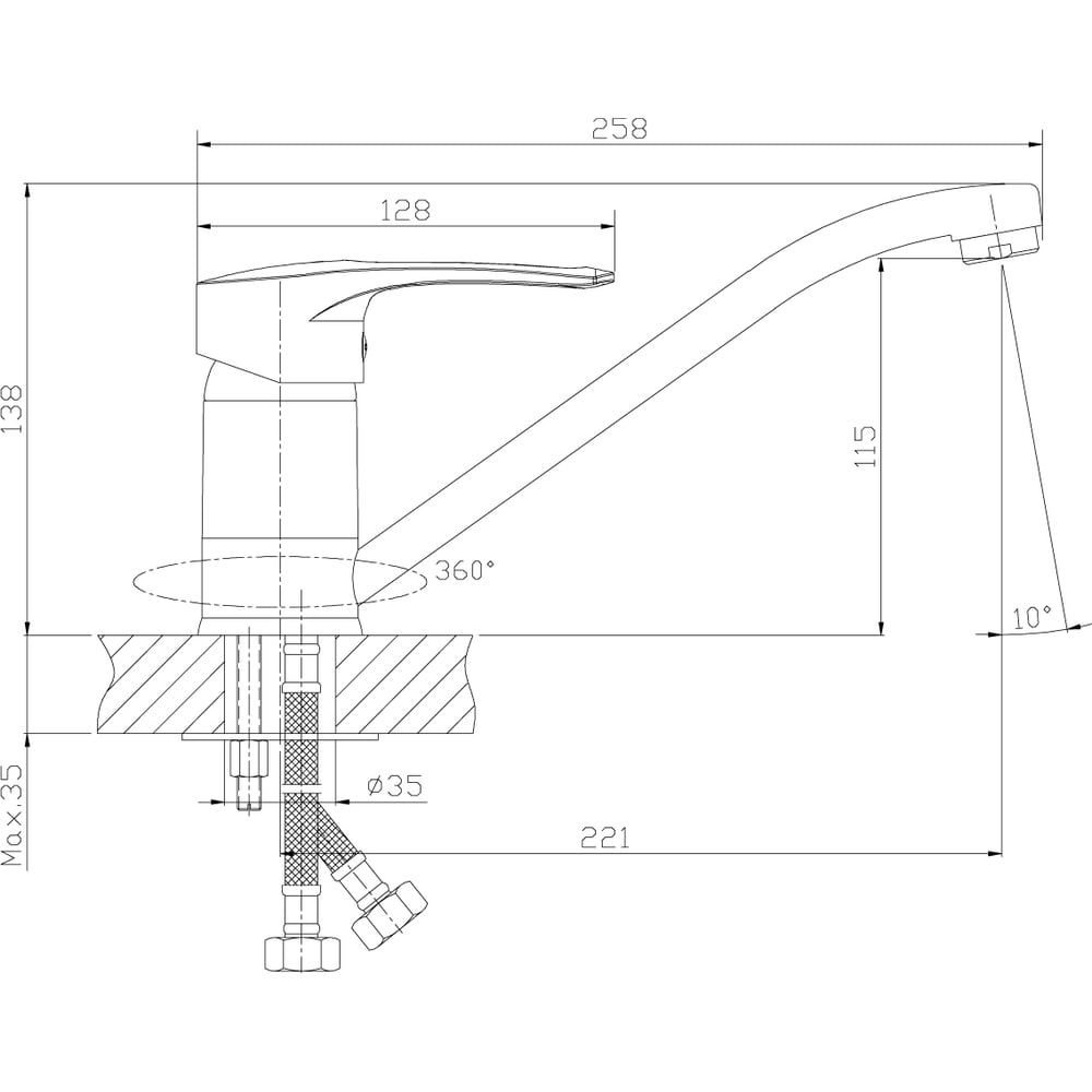 | Диаметр отверстия в раковине | 35 мм |
