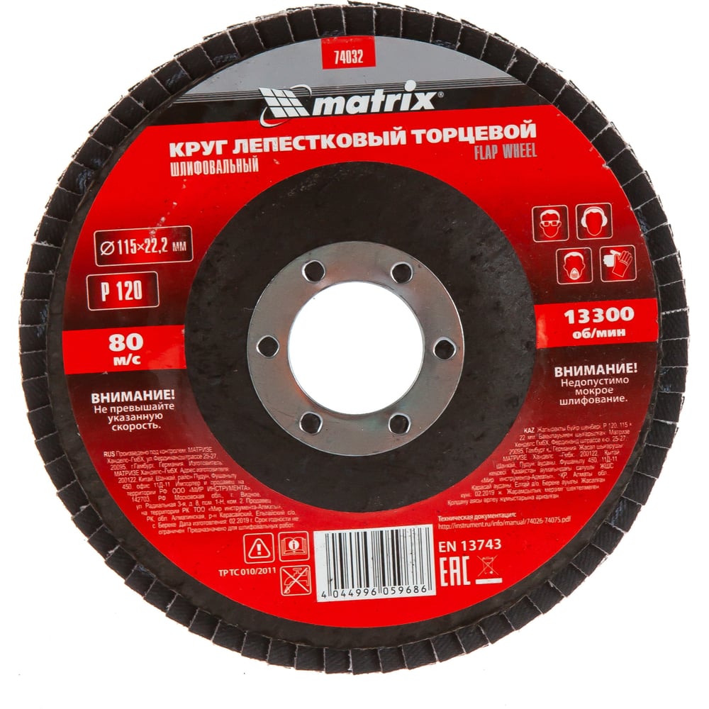 Круг лепестковый торцевой (P120; 115x22.2 мм) MATRIX 74032