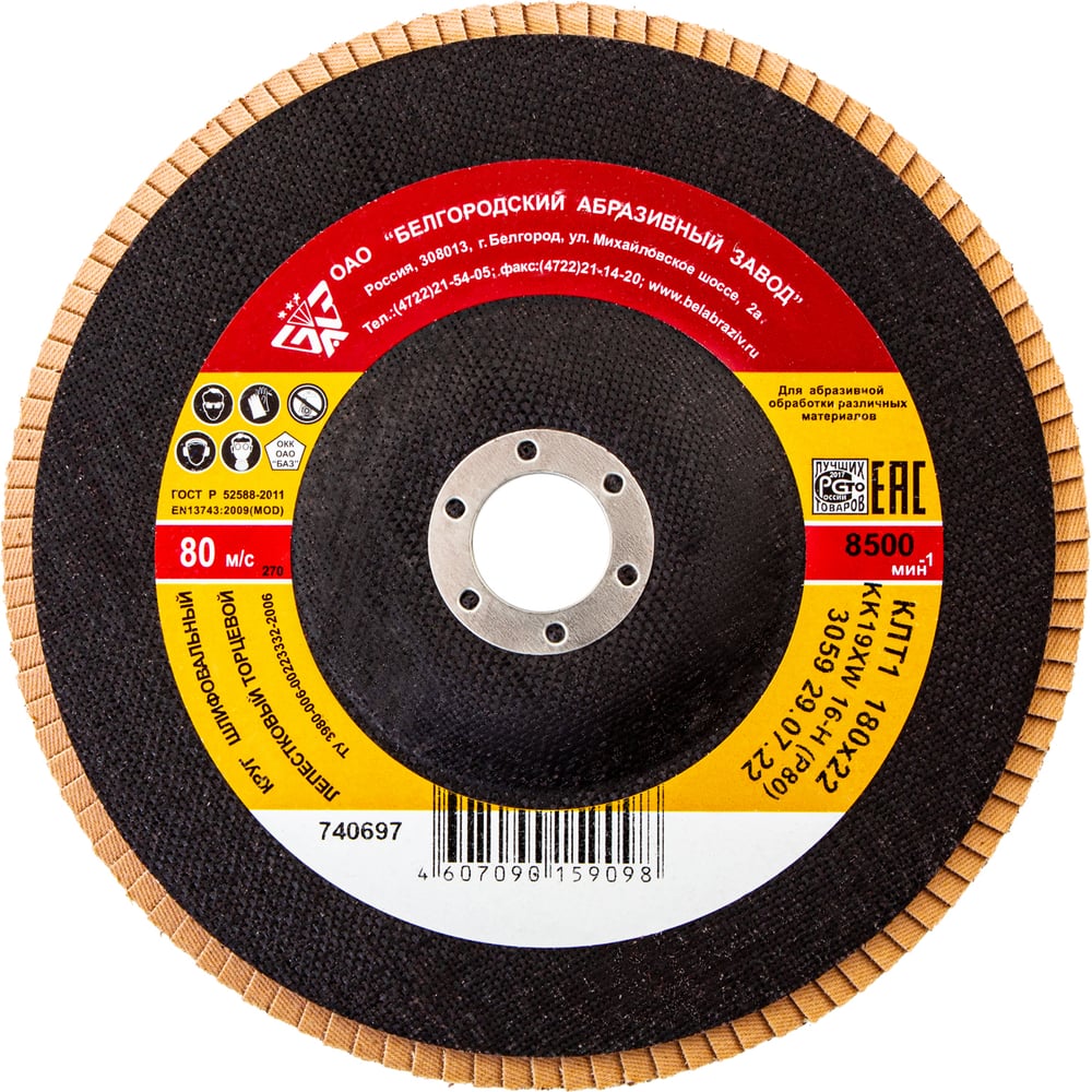 Круг лепестковый торцевой КЛТ-1 (180х22.2 мм; Р80) Без бренда 740697