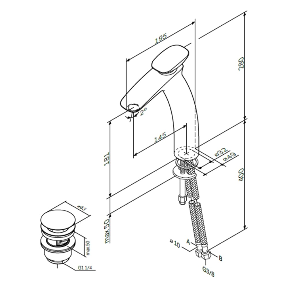 | Диаметр отверстия в раковине | 63 мм |