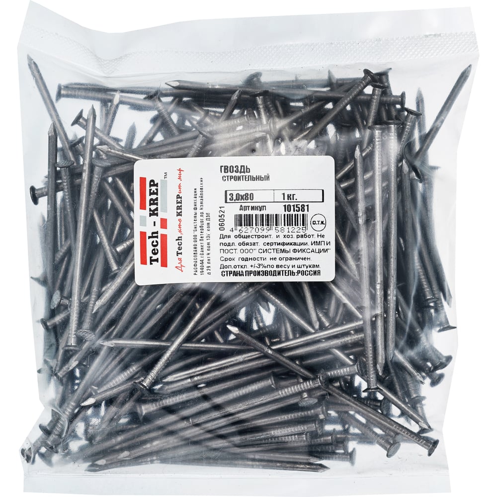 Строительный гвоздь 3.0х80, 1кг (231 шт.) - пакет Tech-Krep 101581