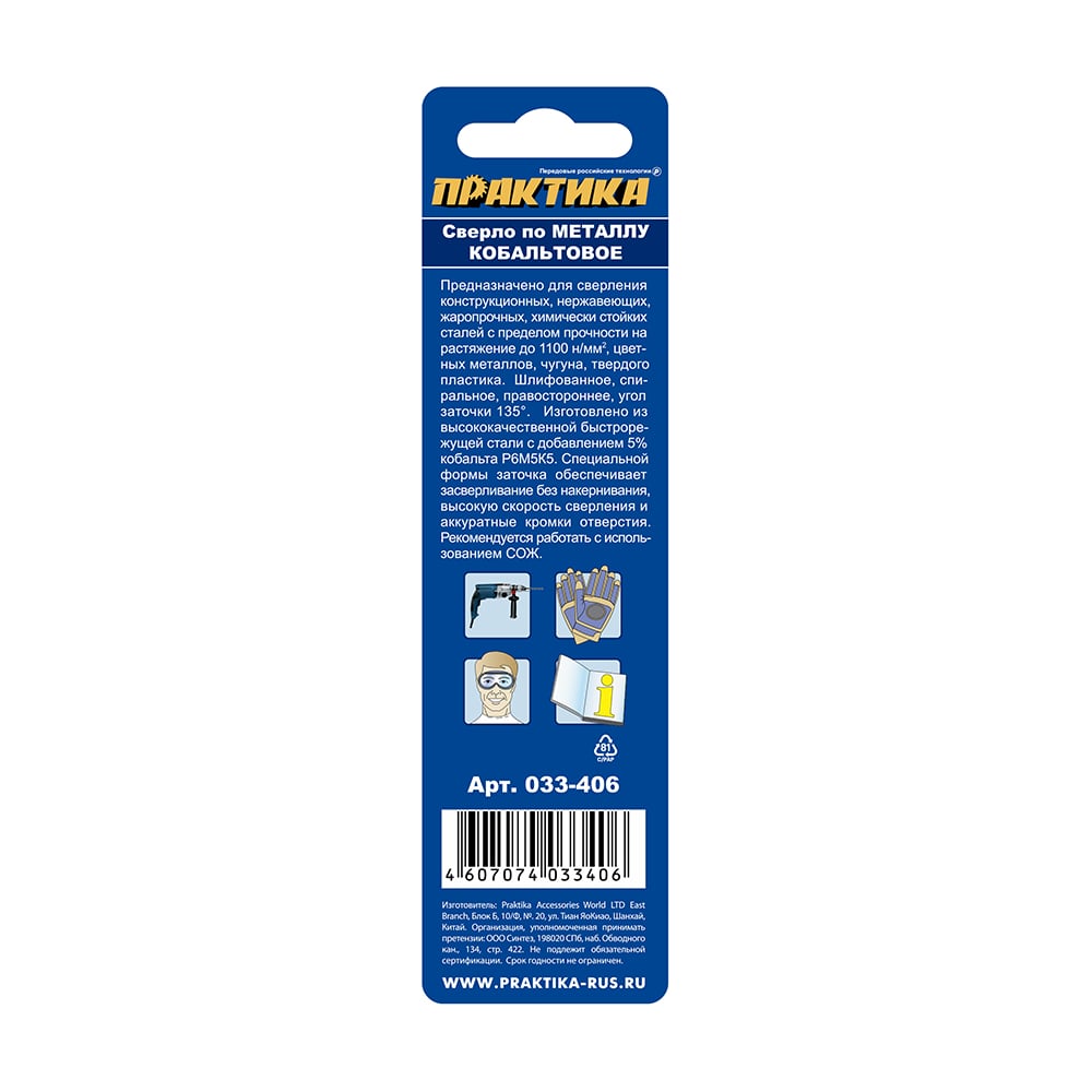 Сверло по металлу кобальтовое (2.5х57 мм) ПРАКТИКА 033-406