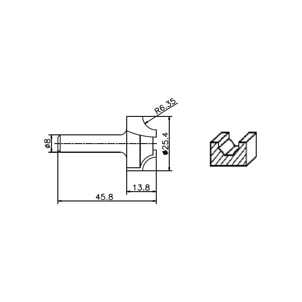 Фреза HM профильная тип E (25.4х13.8х6.35х45.8 мм) REDVERG 840721 6625695