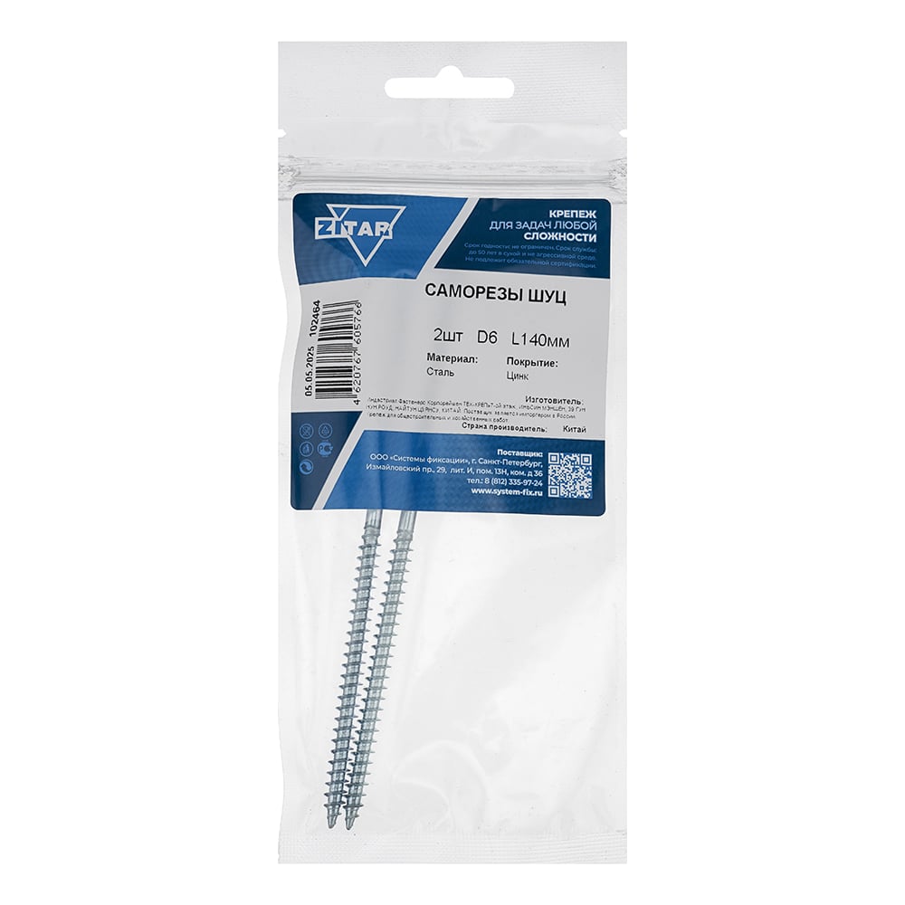Саморез ШУц с потайной головкой 6,0x140 мм, 2 шт., пакет Zitar 102464