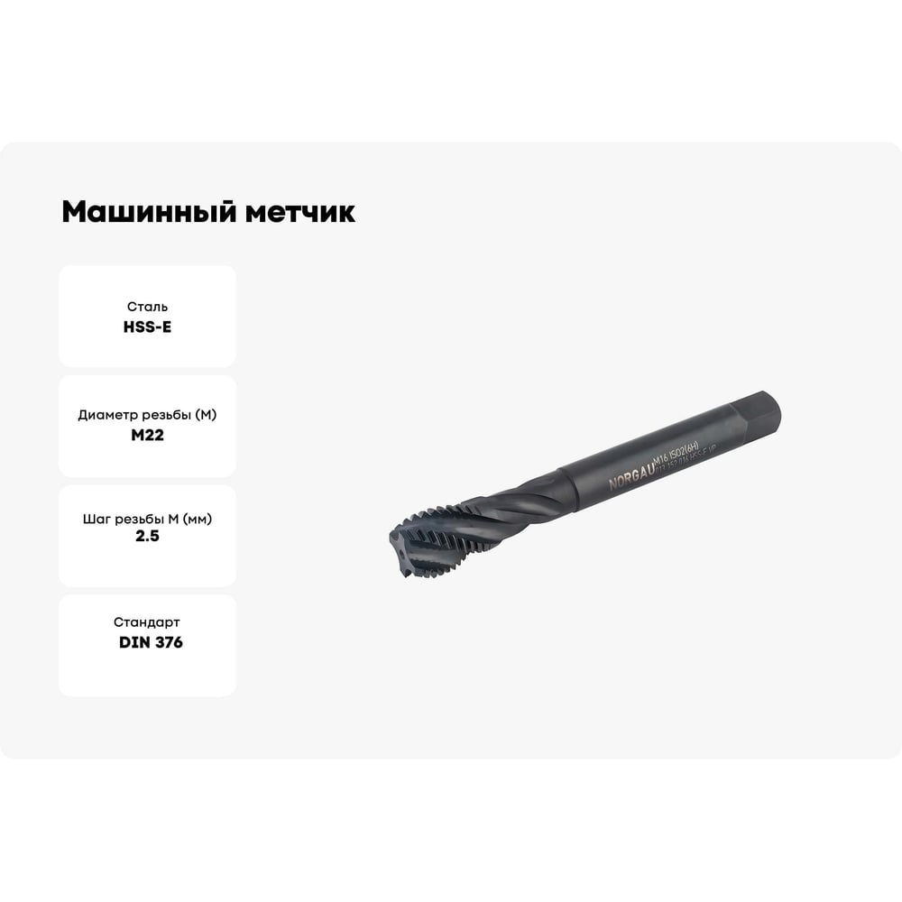 Машинный метчик NORGAU М22 DIN376 6H FNZ HSS-E тип VA 013152022