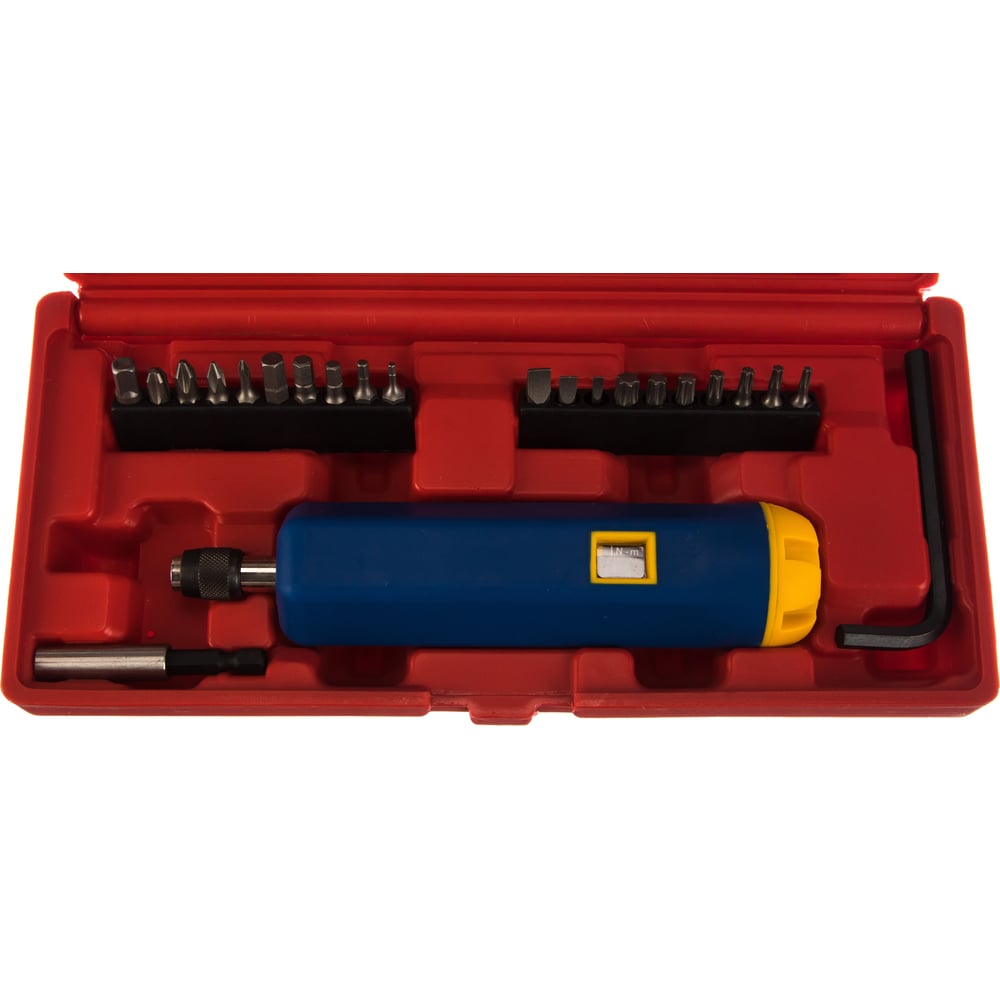 Динамометрическая отвертка 1/4" с набором бит и адаптеров в кейсе JTC-4625A