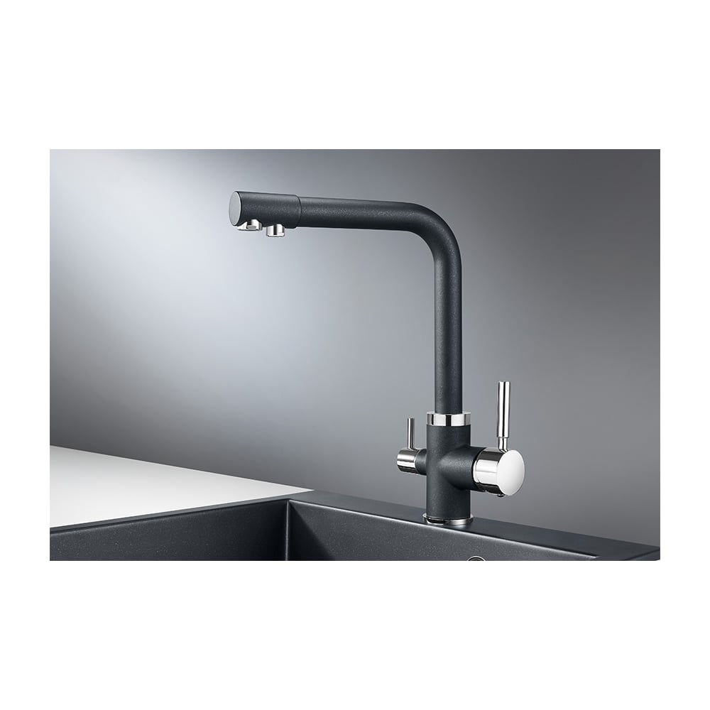 Смеситель Granula высокий с краном под питьевую воду шварц GR-2015
