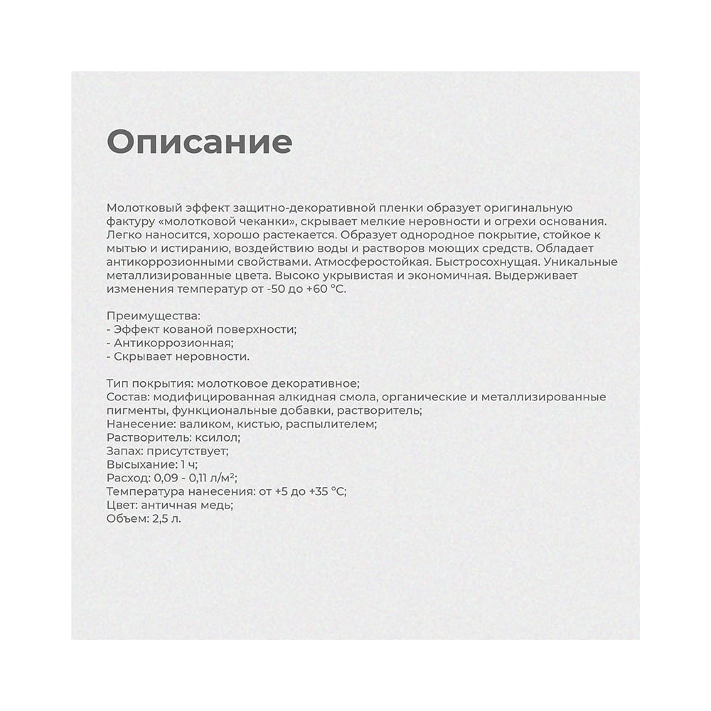 Молотковая эмаль Престиж античная медь 2.5 л 6 204048