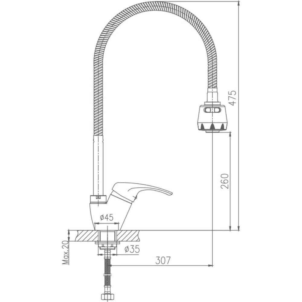 Смеситель для кухни Haiba мойки латун с высоким гибким изливом, хром HB4313 539092