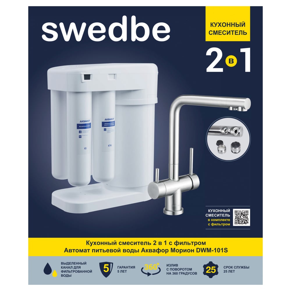 Смеситель для кухни Swedbe Г-образный, в комплекте с фильтром K8144M