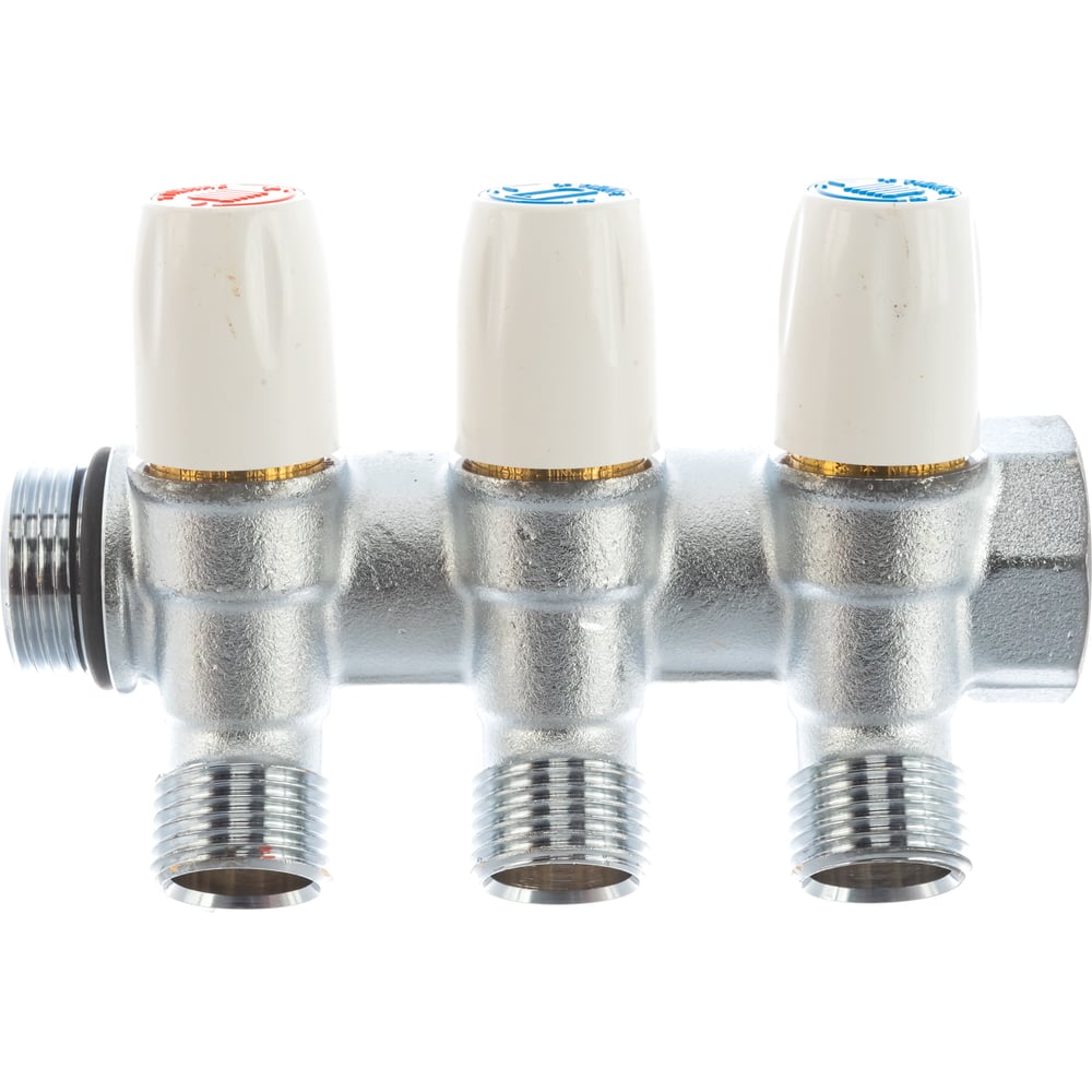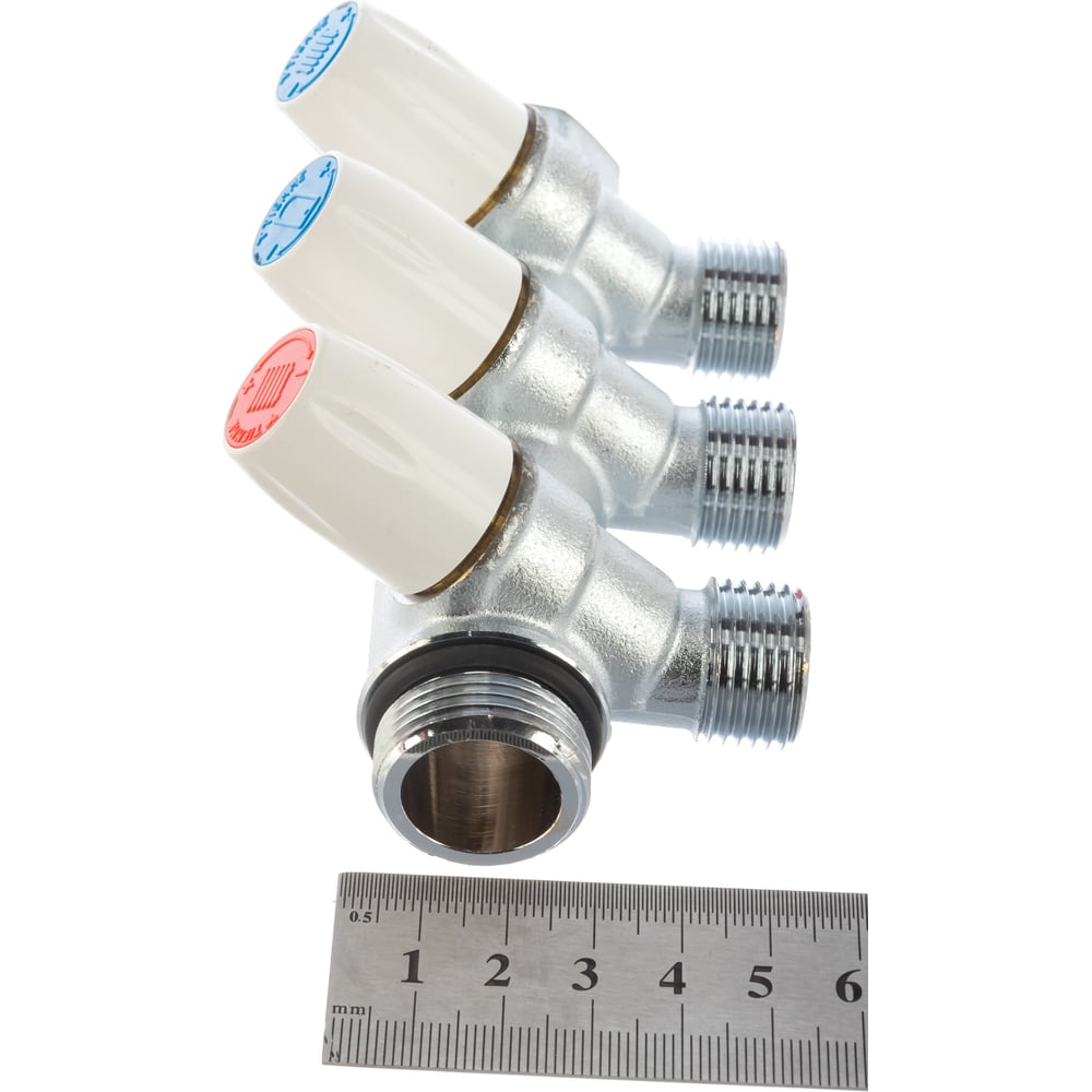 Коллектор Tiemme Maxima НВ, 3/4", с вентилями, 3 выхода, 1/2", Н 36 мм, хром 1860005