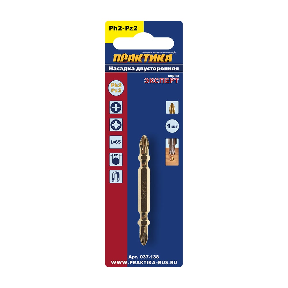 Бита двусторонняя PH2-PZ2 Эксперт (1 шт; 65 мм) ПРАКТИКА 037-138