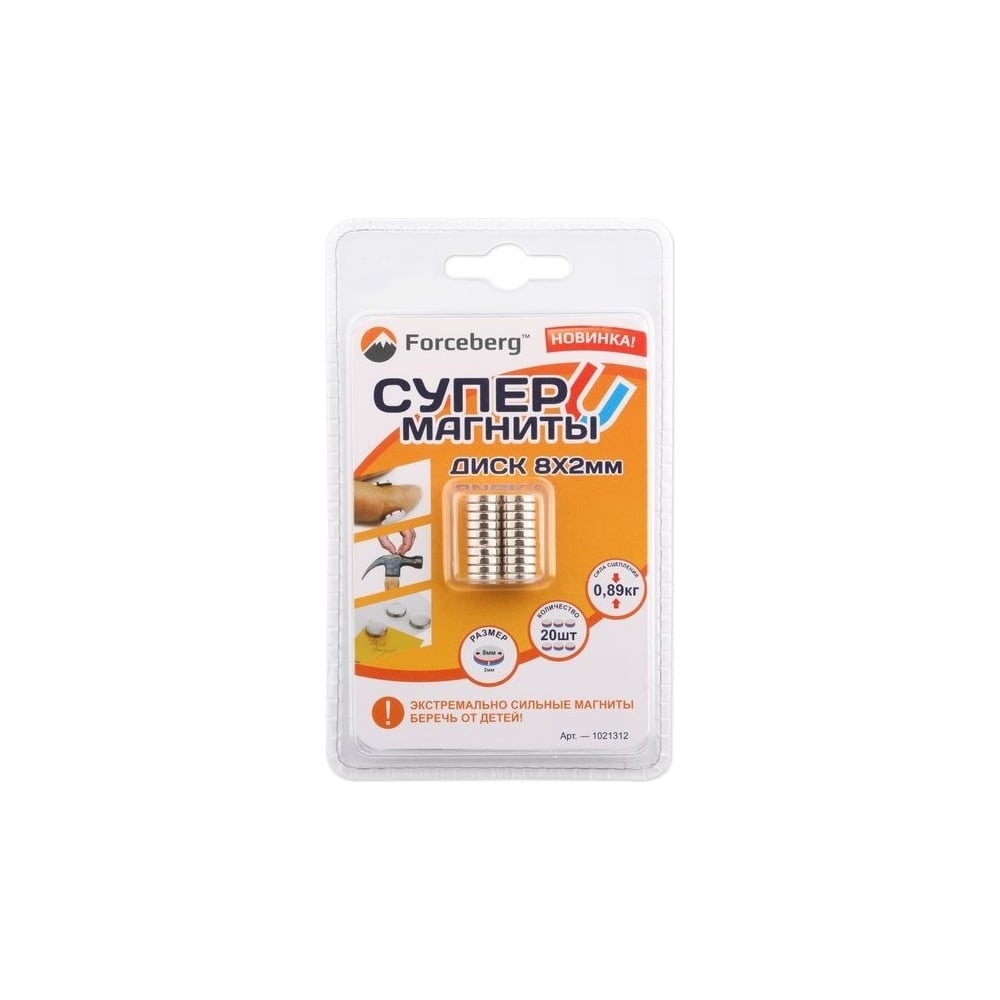 Неодимовый магнит, диск 8х2мм, 20шт Forceberg 9-1212112-020