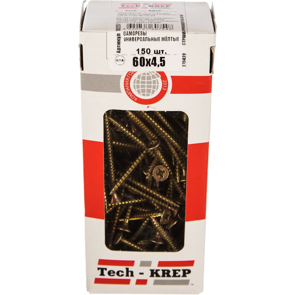 Универсальный саморез Tech-Krep 60х4,5 мм 150 шт желтый, коробка с окном 102257