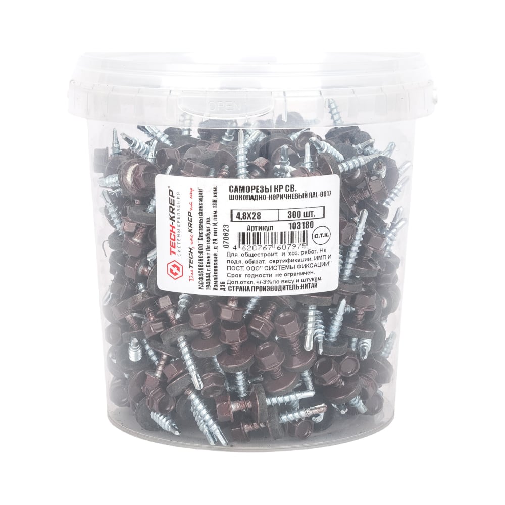 Кровельный саморез Tech-Krep КР сверло 4,8х28 RAL-8017 шоколадно-коричневый 300 шт, ведро 103180