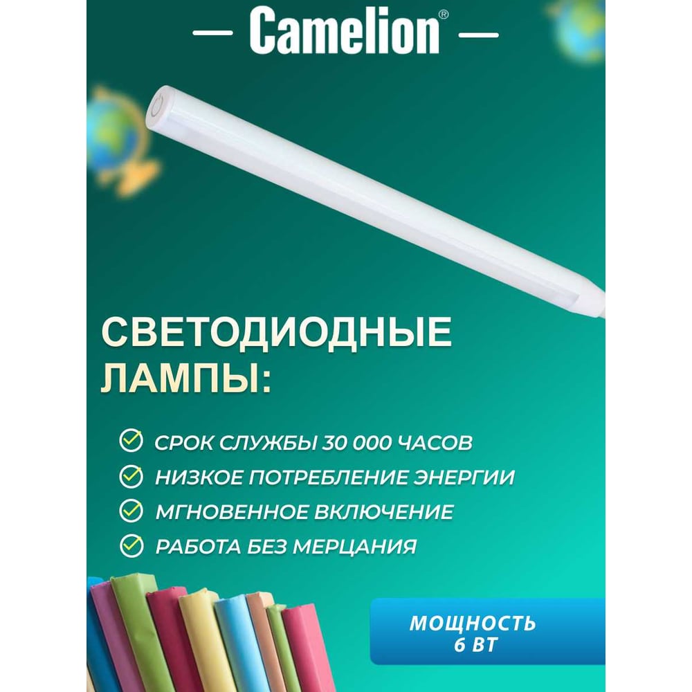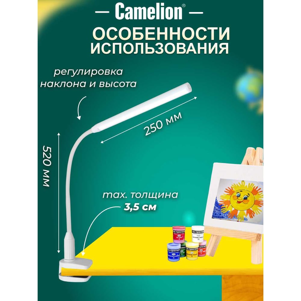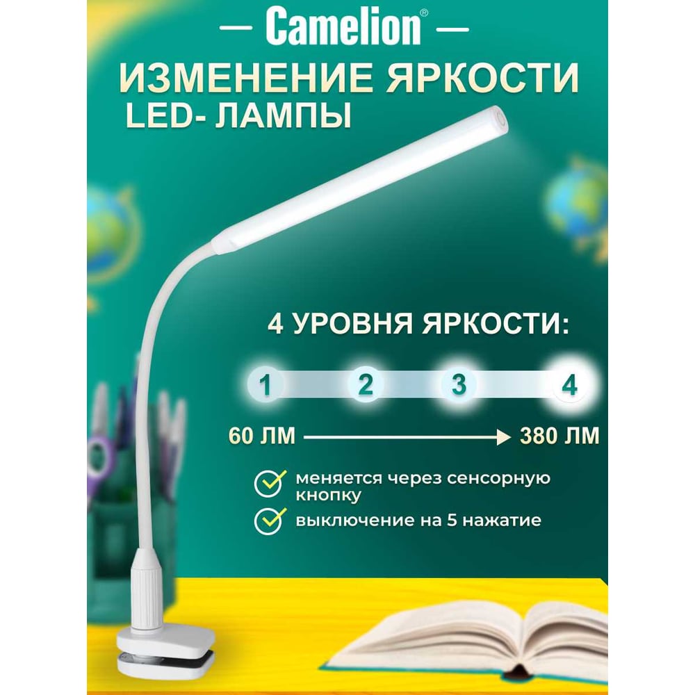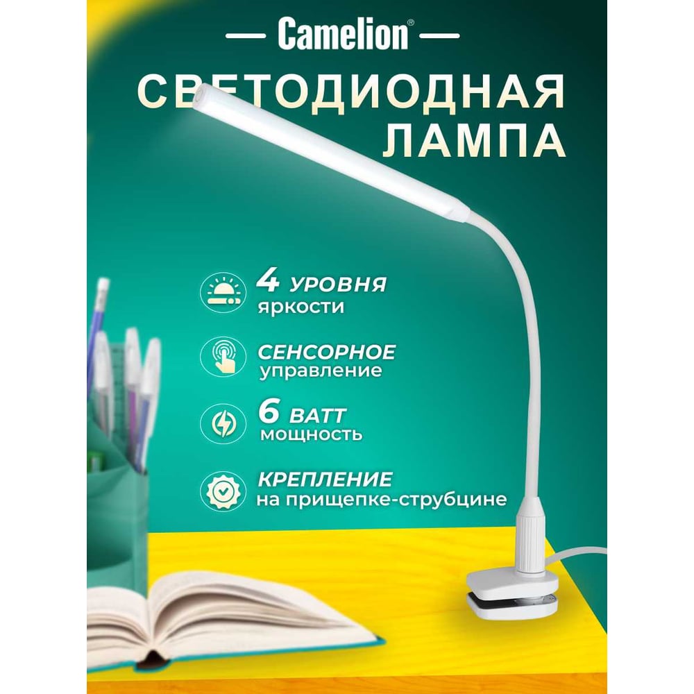 Настольный светильник, белый, LED, 6Вт, зажим-струбцина, 230В, сенсорное включение, 4 уровня яркости, 4000К Camelion KD-793 C01 12490