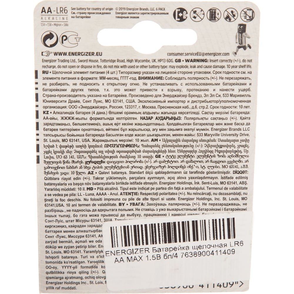 Щелочная батарейка Energizer LR6 AA MAX 1.5В бл/4 7638900437645