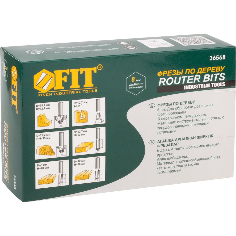 Фрезы по дереву кромочные (6 шт; хвостовик 8 мм) FIT IT 36568