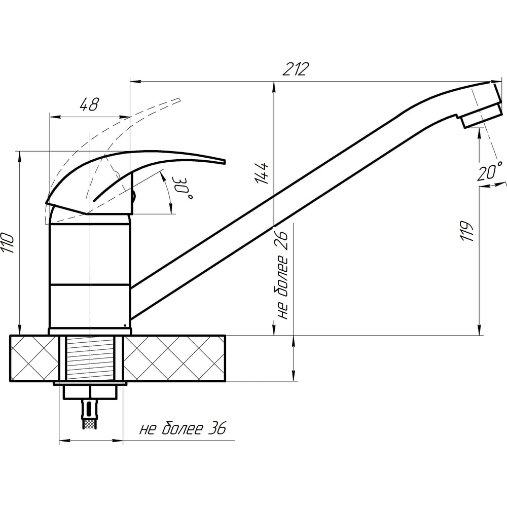 | Высота смесителя | 212 мм |