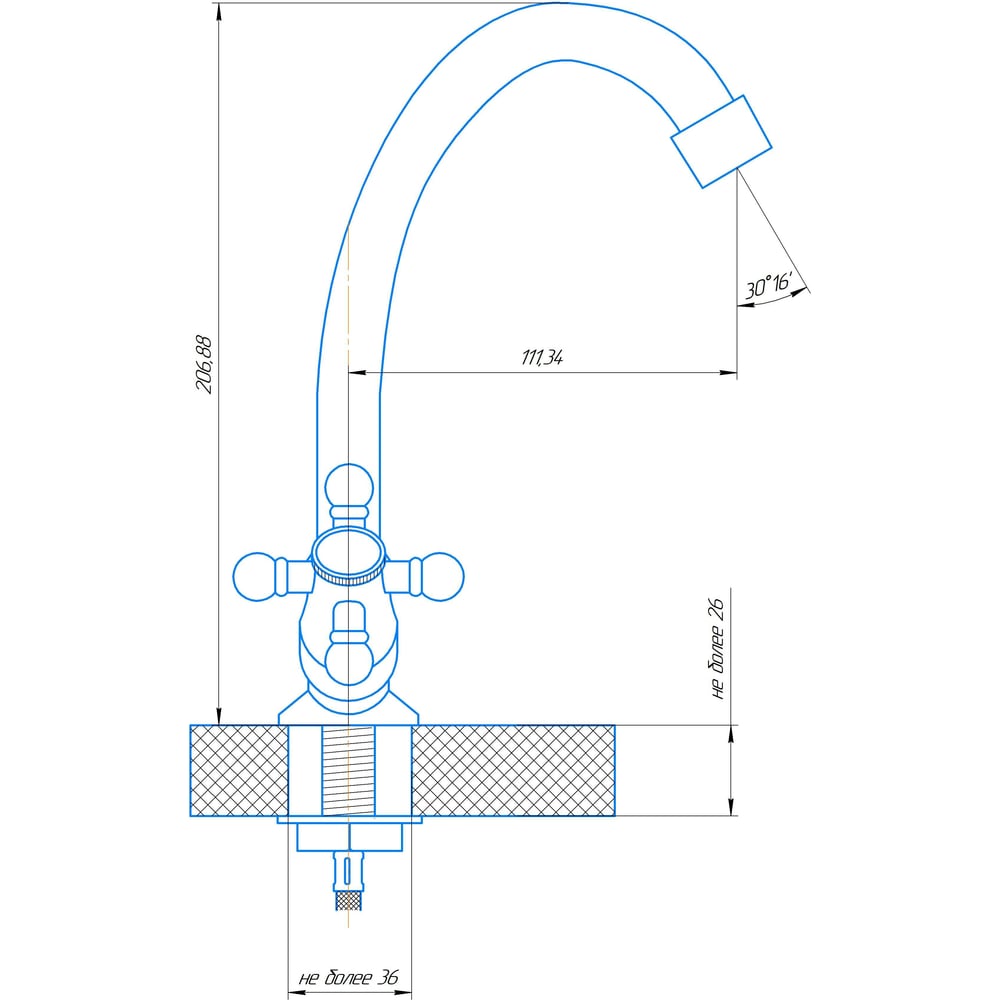 Смеситель stOMEGA Омега маховик крест, крепление под гайку 3310