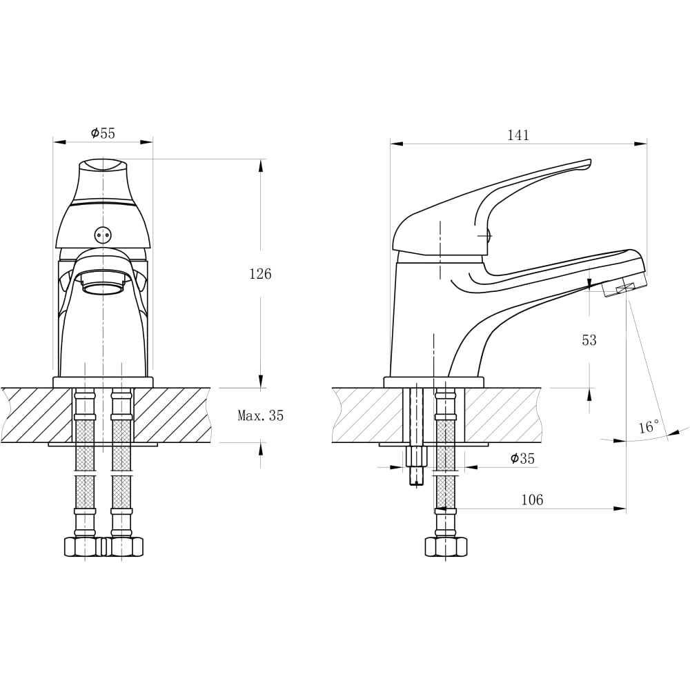 | Диаметр отверстия в раковине | 35 мм |