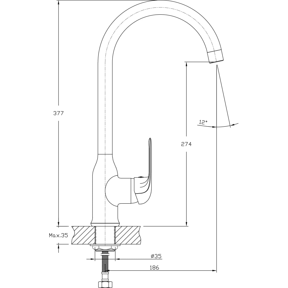| Высота смесителя | 377 мм |