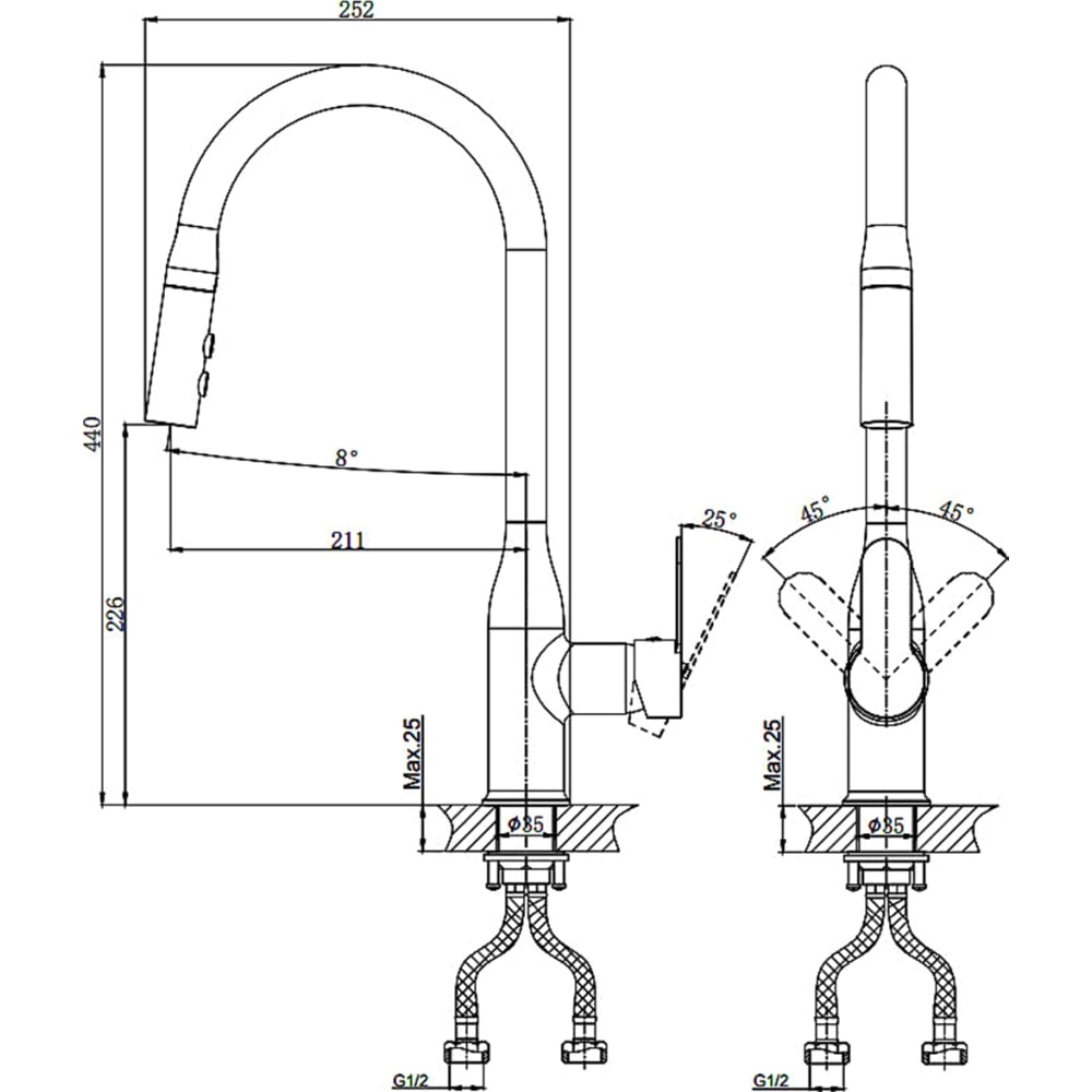 Одноручный смеситель для кухни RUSH с поворотным изливом и вытяжной лейкой TE2835-24