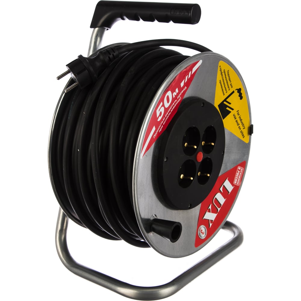 Силовой удлинитель на металлической катушке LUX К4-Е-50 50м 4 розетки с з/к 45150 4606400419471