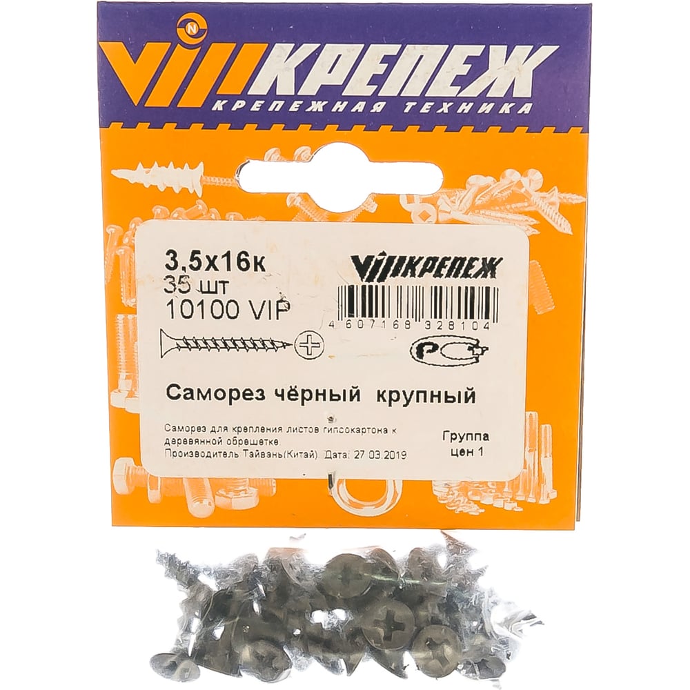 Саморез VIPКрепеж черный 3,5х16 к 35 шт 10100 VIP