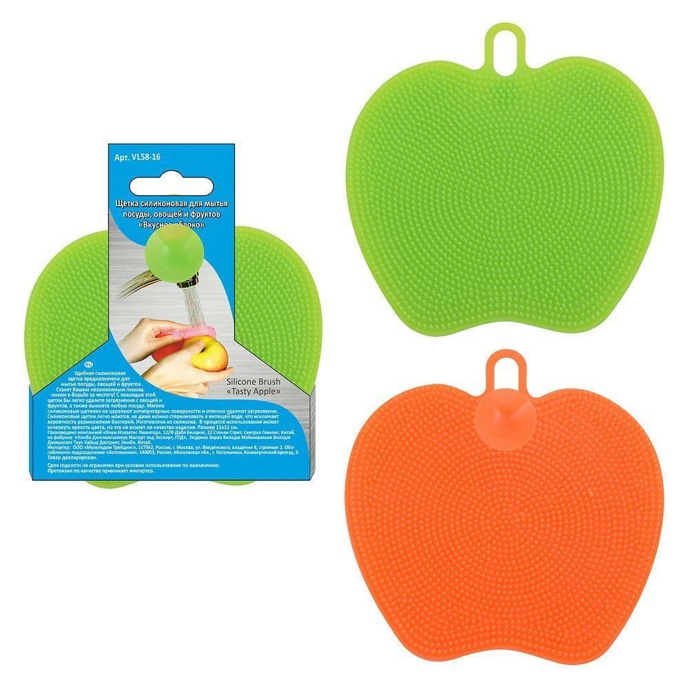 Силиконовая щетка для мытья посуды, овощей и фруктов МУЛЬТИДОМ Вкусное яблоко VL58-16