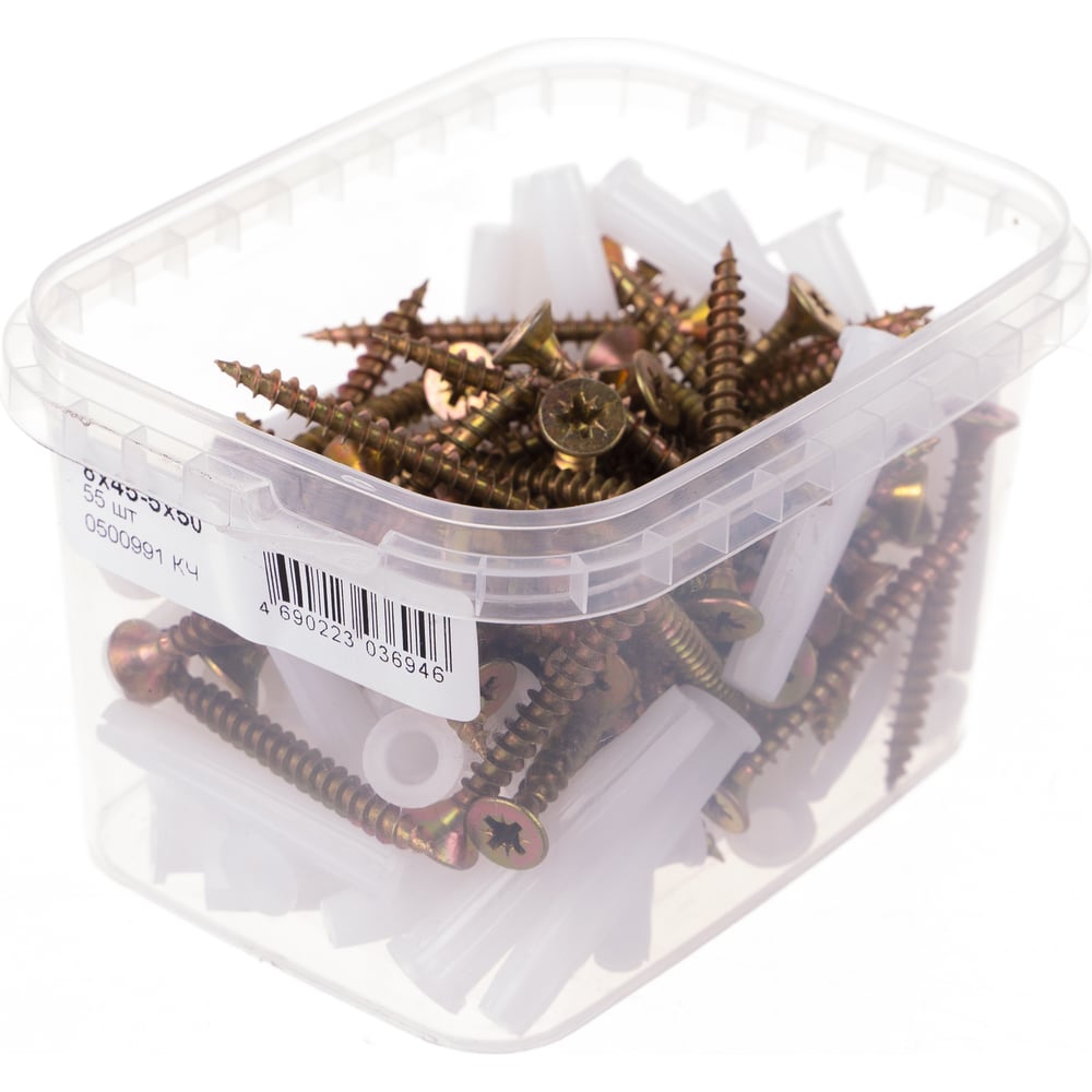 Дюбель с шурупом Качественный Крепеж белый дюбель 8х45 + шуруп 5х50 55 шт 0500991 КЧ