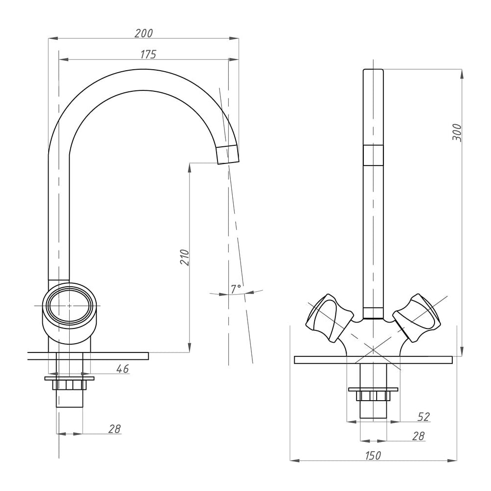 Покрытие глянцевое Цвет хром Тип установки настольный Стиль современный Материал корпуса сплав цинк, медь, алюминий Поворотный излив да Назначение для кухни Тип крепления на гайку Гибкий излив нет Длина излива 175 мм Высота смесителя 300 мм Лейка нет Термостат нет Встраиваемый нет Подводка в комплекте нет Аэратор да Переключатель на фильтр нет Тип смесителя двухрычажный Форма излива воды традиционная Запорный клапан керамическая кран-букса Форма смесителя округлая Выдвижной излив нет Излив есть Складной нет С щеткой нет Двойной излив нет Размер крепления G1/2 Направление струи под углом Диаметр отверстия в раковине 28 мм Расположение термостата без термостата