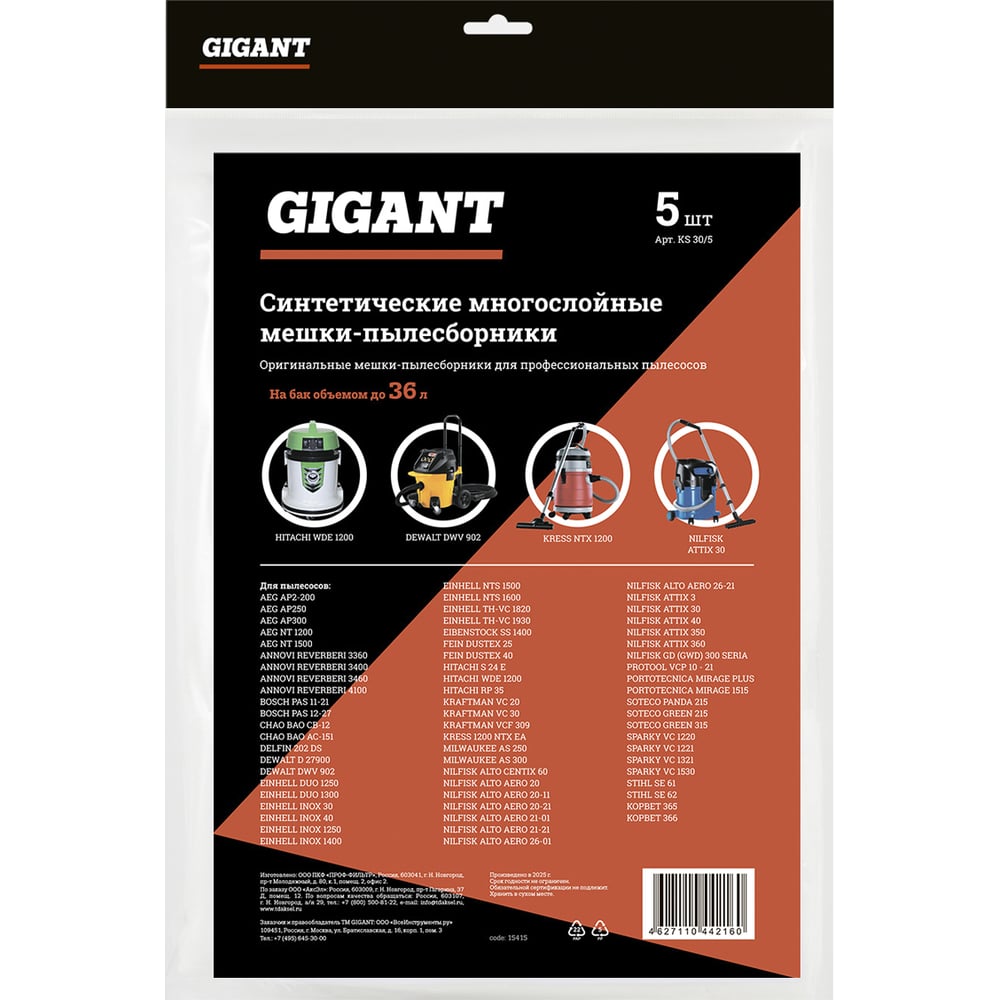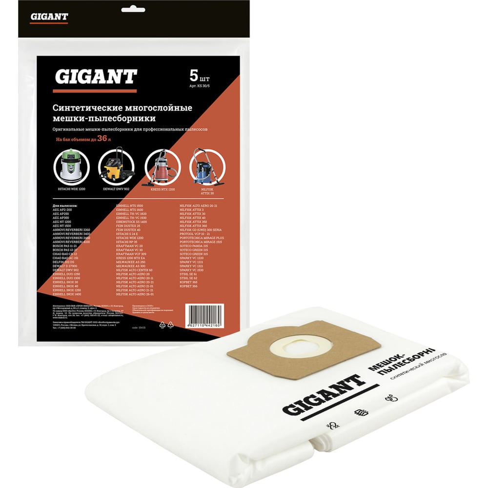 Мешки для профессиональных пылесосов 5 шт. до 36 литров Gigant KS 30/5 KS30/5