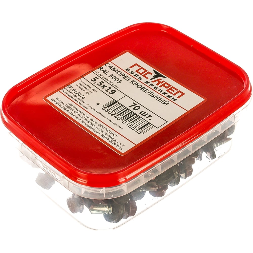 Кровельный саморез ГОСКРЕП 5.5х19 RAL 3005 красное вино, 70 шт., пл.конт 280 мл 2-0018220