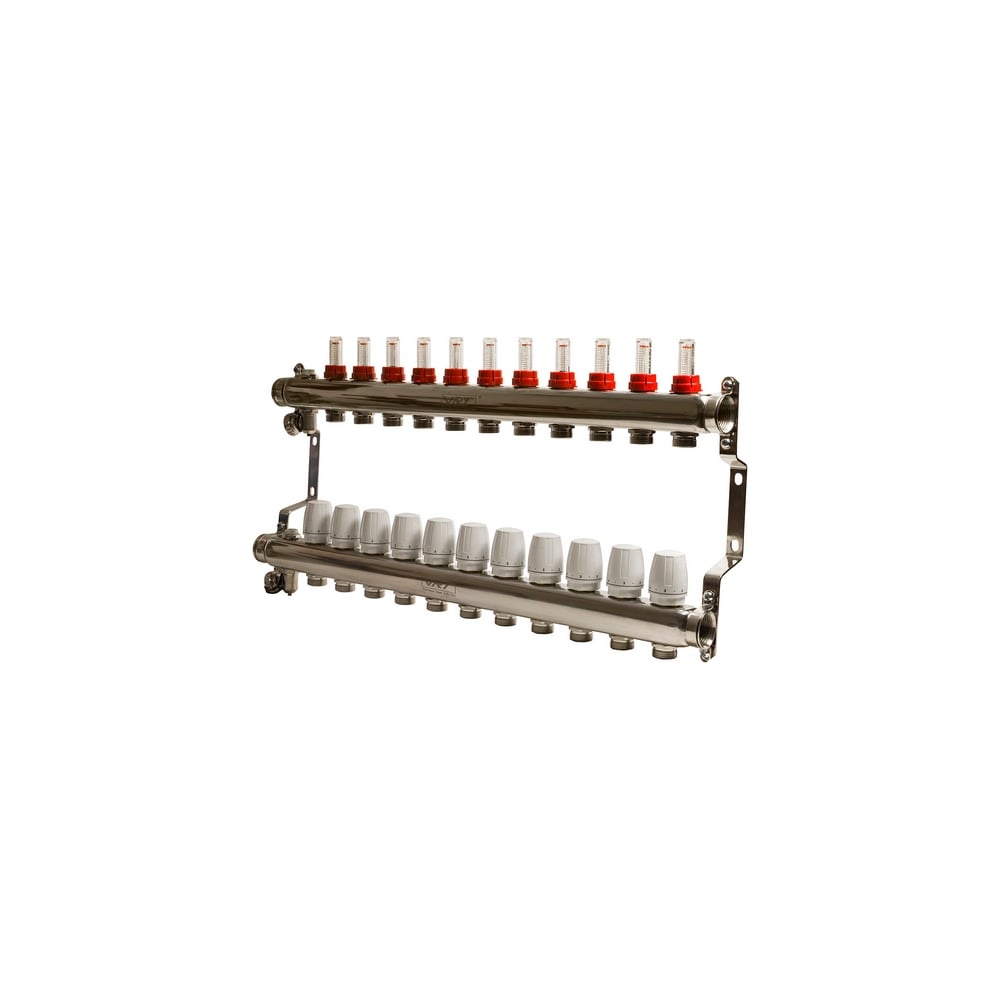 Коллекторная группа VRT 1"х3/4", евроконус, 11 выходов, c расходомерами 530140