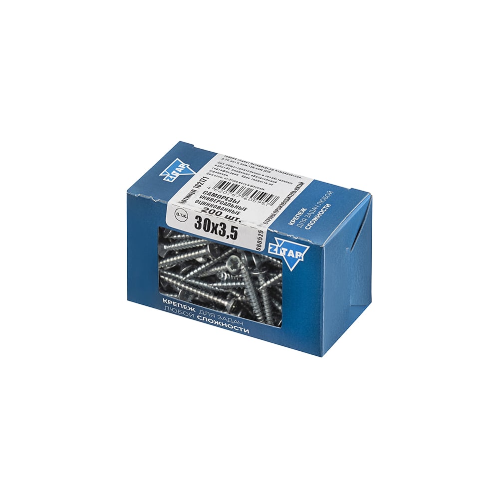 Универсальные саморезы Zitar 30x3,5 мм 200 шт оцинкованные коробка с окном Tech-Kr 102171