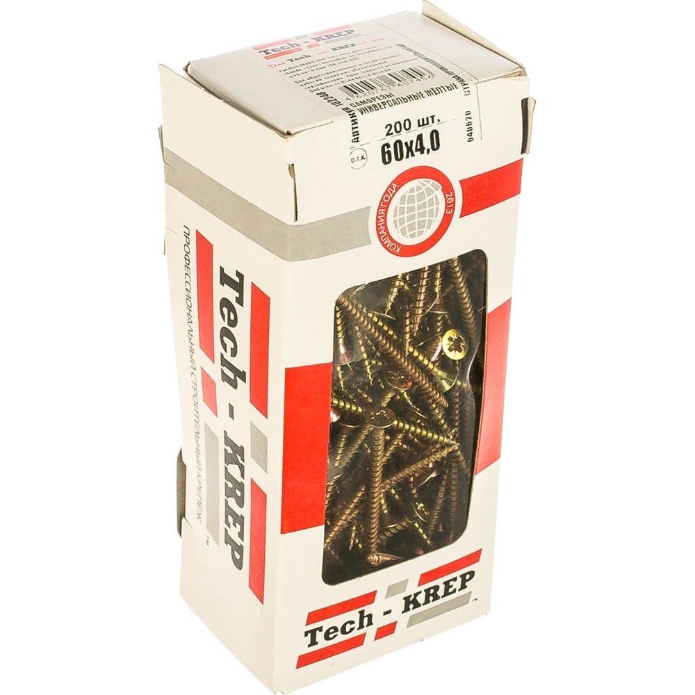 Универсальный саморез Tech-Krep 60х4,0 мм 200 шт желтый, коробка с окном 102248