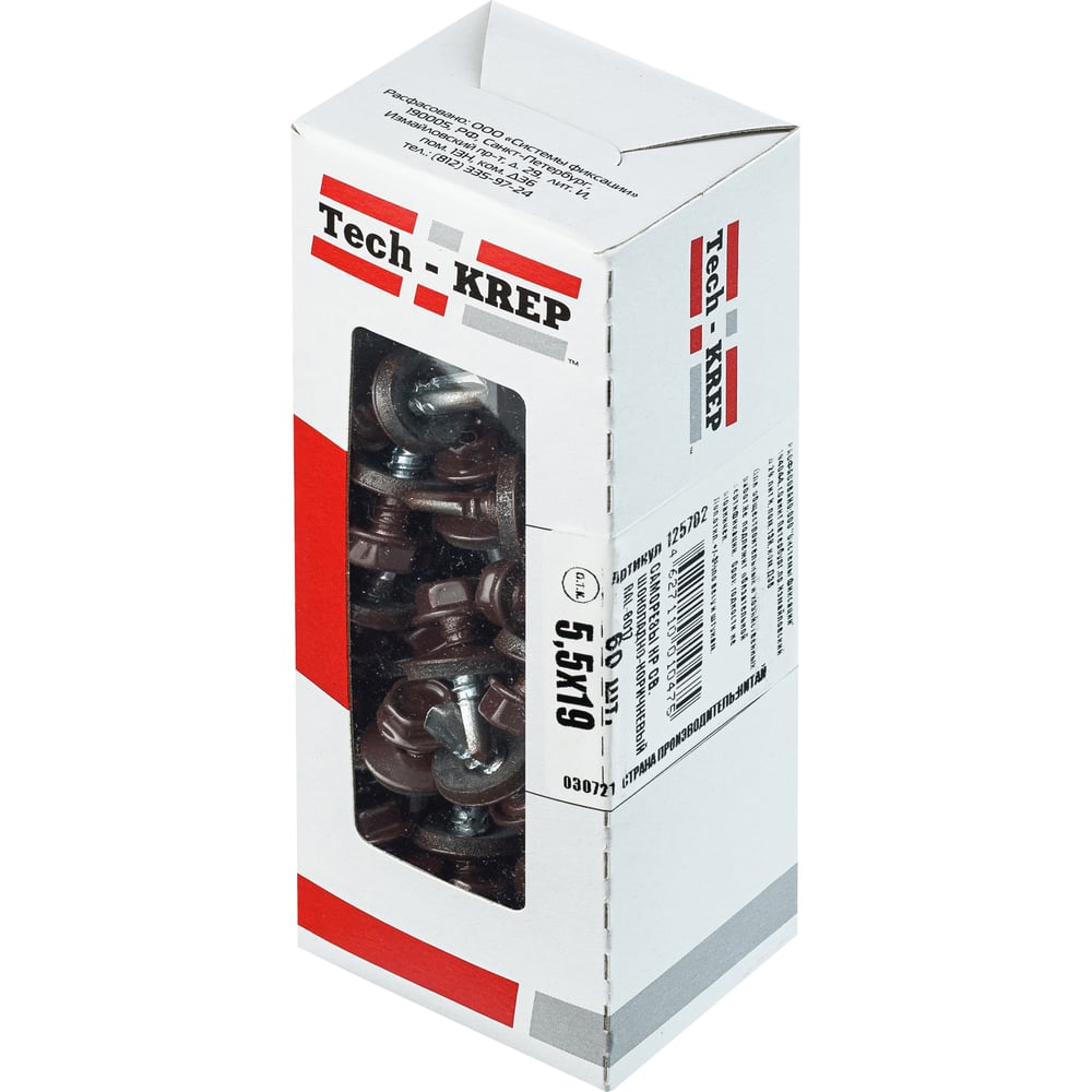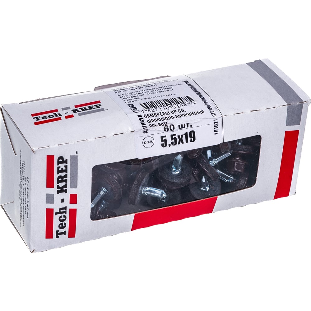 Кровельный саморез Tech-Krep КР сверло 5,5х19 RAL-8017 шоколадно-коричневый, 60 шт, коробка с окном 125702