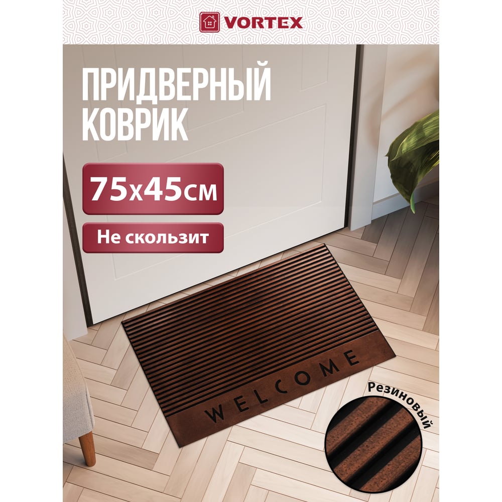 Придверный коврик VORTEX Welcome 45х75 см, медь, рифленый 24271