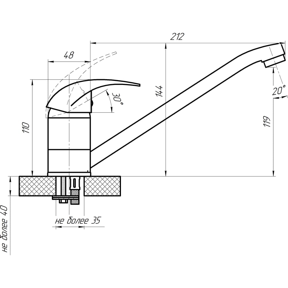 Смеситель для кухни stOMEGA длина излива 24 см, картридж 40 мм, 2 шпильки 3301-1