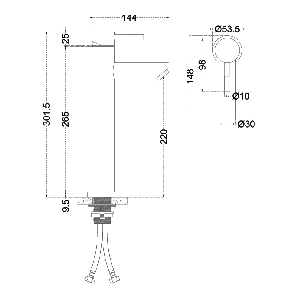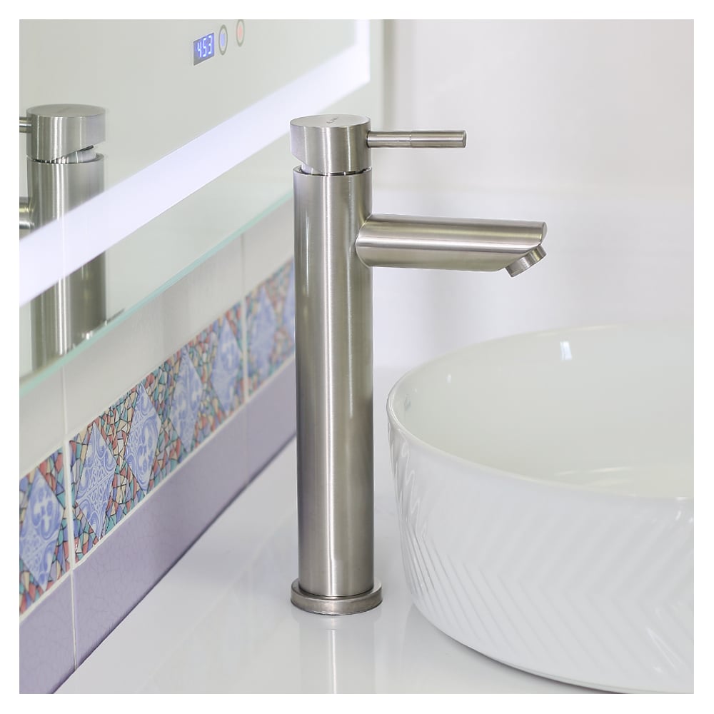 Смеситель для умывальника MELANA Tondo нерж.сталь, однорычажный, сатин, литой излив 610102